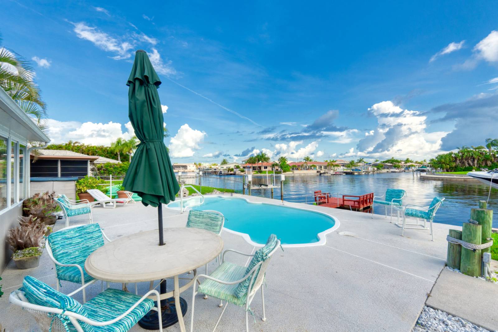 WATERFRONT Home. Take in the beauty of the sunshine, relaxing private pool, floating dock perfect for fishing and available to tie up your boat during your stay.