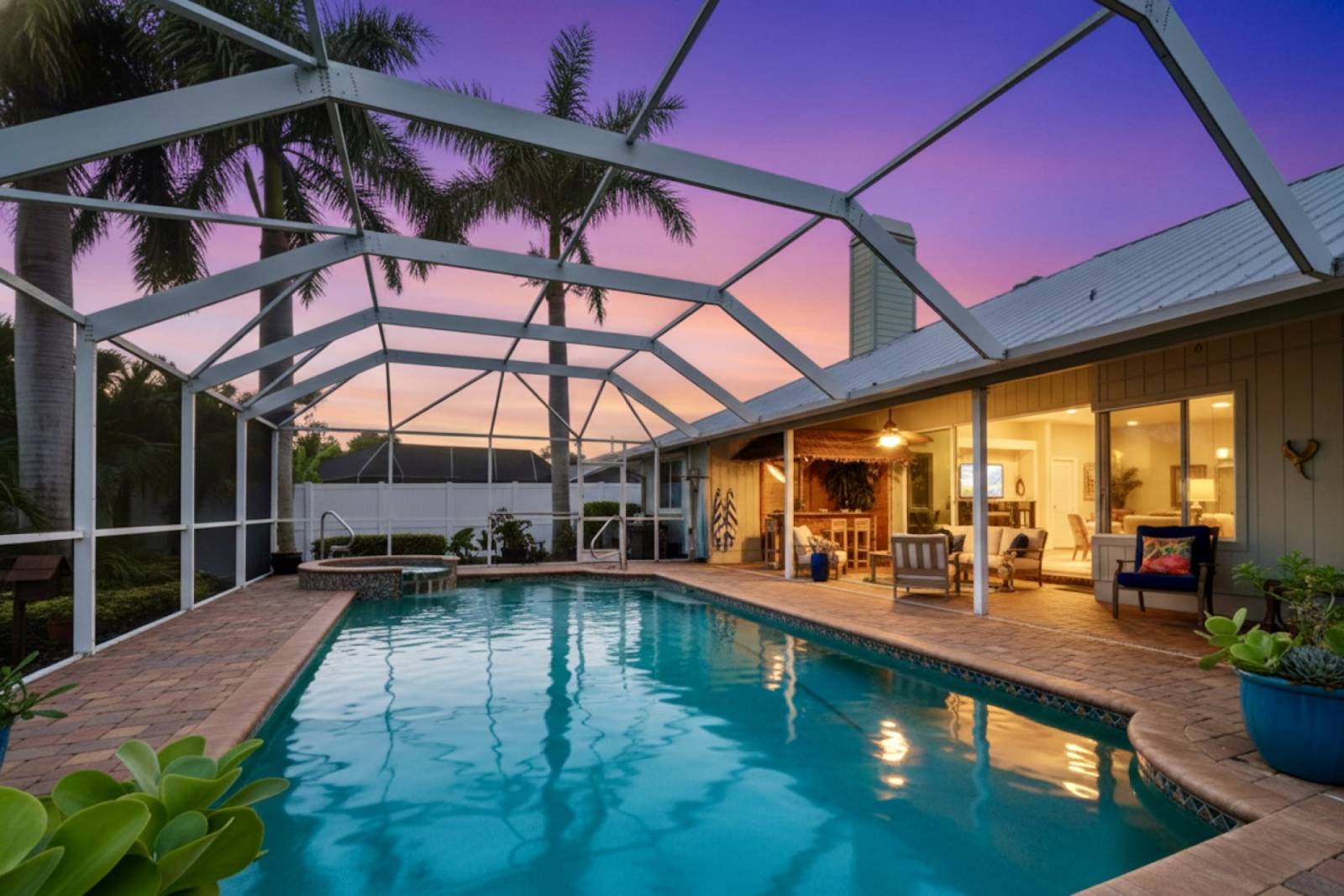 This newly available, beautifully decorated 2,700+ sq. ft. private pool/spa home is just 1.8 miles from Nokomis Public Beach and perfect for a relaxing vacation. With two king bedrooms and one queen bedroom, the home accommodates up to six adults, ideal for three couples. The spacious, split-floor plan includes a large master suite with direct access to the private saltwater pool and spa, which is enclosed in a screened lanai. The master suite also features a luxurious en-suite bath with a soaking tub and dual showerheads. The other two bedrooms are located on the opposite side of the home, ensuring privacy for all guests.