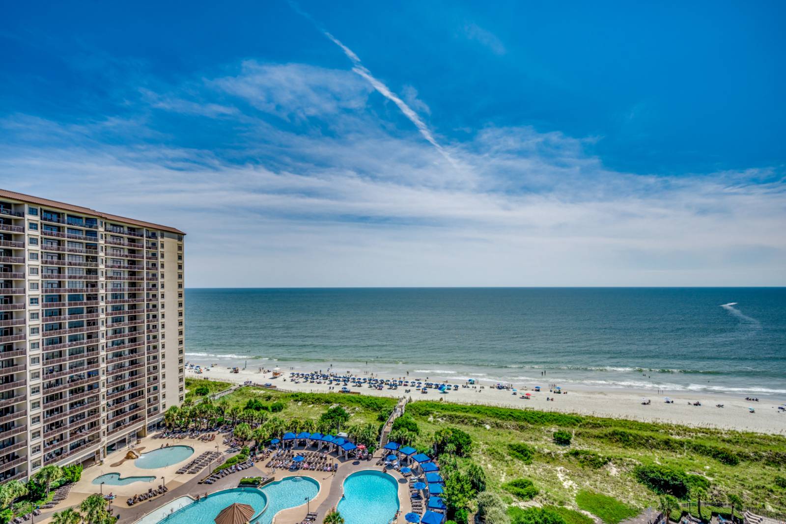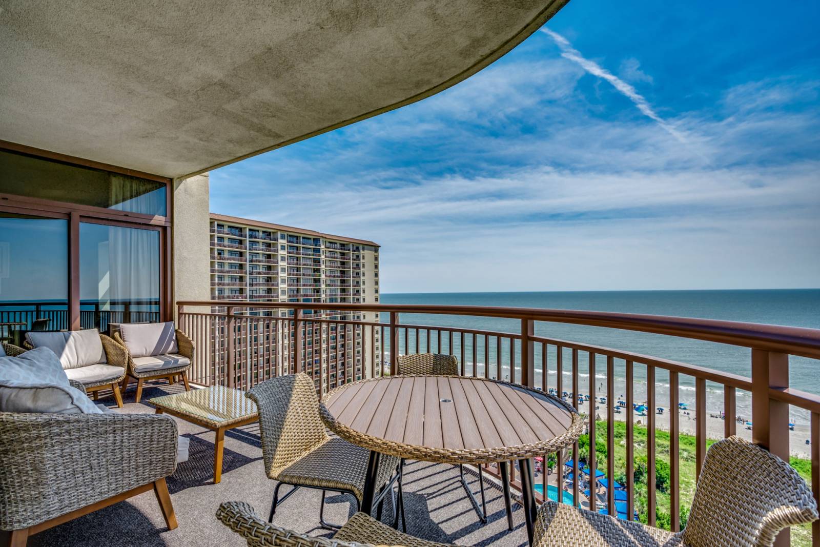 New to rental! Escape to paradise in this rare end-unit on the 15th floor of the Jasmine Tower at North Beach Resort & Villas. This spacious 4-bedroom, 3.5 bathroom condo offers a perfect blend of luxury, comfort, and breathtaking ocean views. From the moment you step inside, you’ll be captivated by the stylish coastal decor and open-concept design, creating an inviting atmosphere for relaxation. The 3 private balconies provide panoramic oceanfront views, making any of them the perfect spot to enjoy your morning coffee or unwind as the sun sets over the Atlantic. The beautifully furnished living area features plush seating and large windows that flood the space with natural light. A fully equipped kitchen with stainless steel appliances and granite countertops ensures you have everything you need for dining in. Don’t miss your chance to stay in this stunning property—book your vacation today!