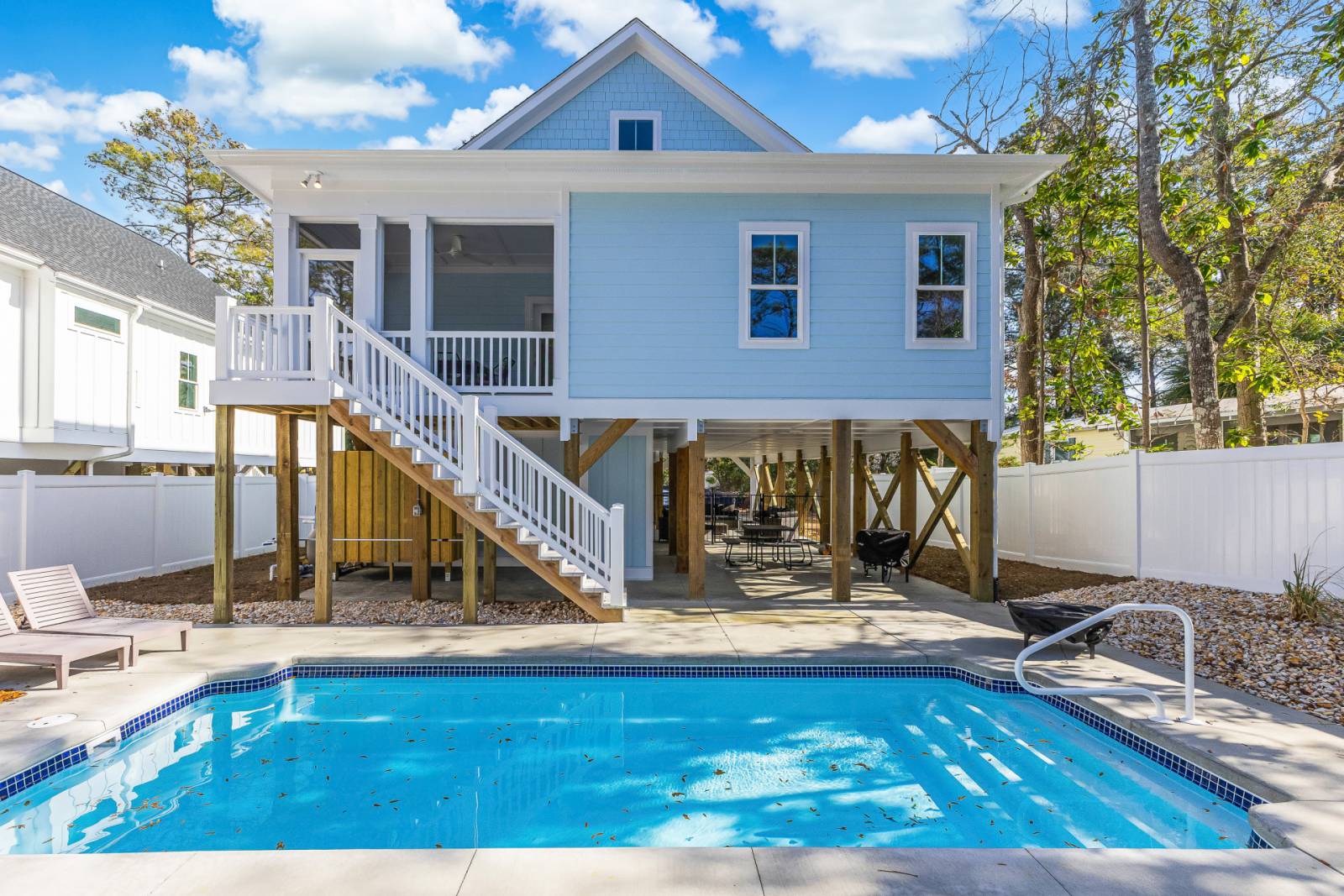 Step outside and enjoy your own private backyard oasis. Take a dip in the private pool, fire up the grill for easy outdoor meals, or gather around the firepit in the evenings for conversation and s’mores. For a little friendly competition, the home also features a ping pong table, along with beach toys for fun-filled days by the shore.