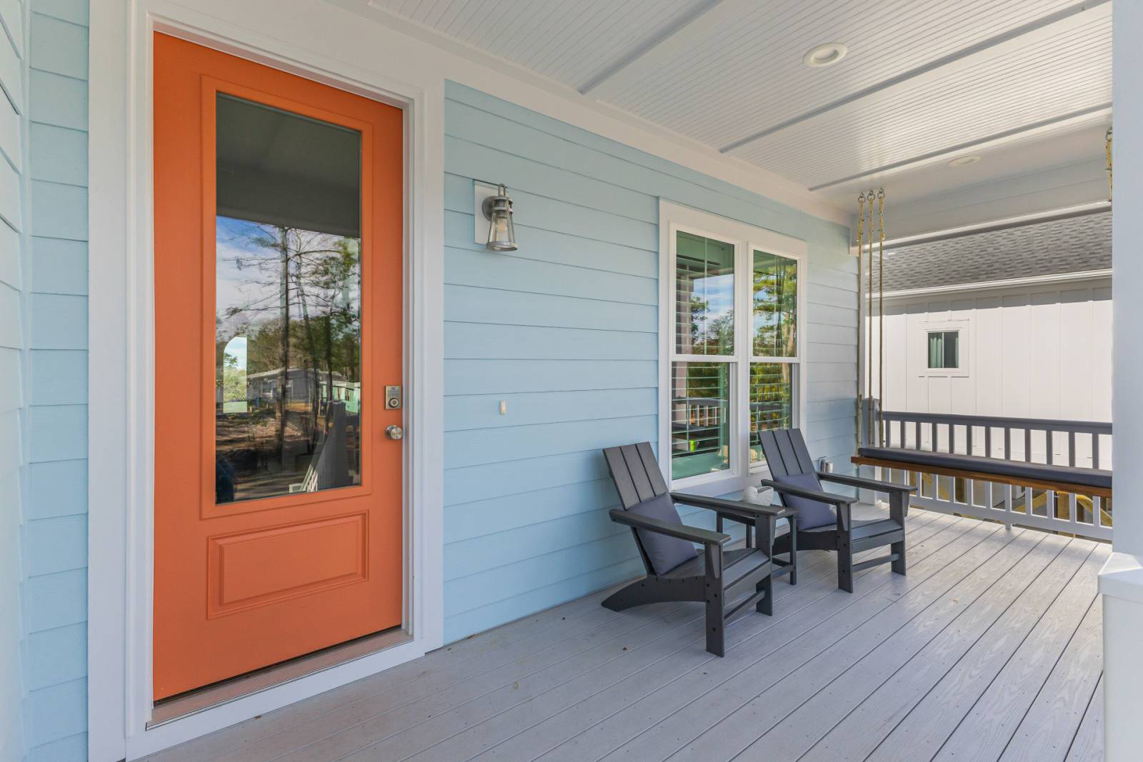 Inside, you’ll find tastefully curated furniture, spacious living areas, and a large TV perfect for movie nights or game-day gatherings. The open, flowing design makes it easy to connect—whether you’re sharing meals, unwinding after the beach, or simply enjoying time together in a well-appointed coastal setting.