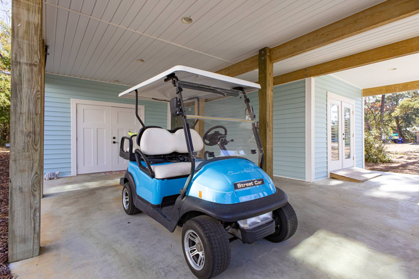 Short golf cart ride to the beach