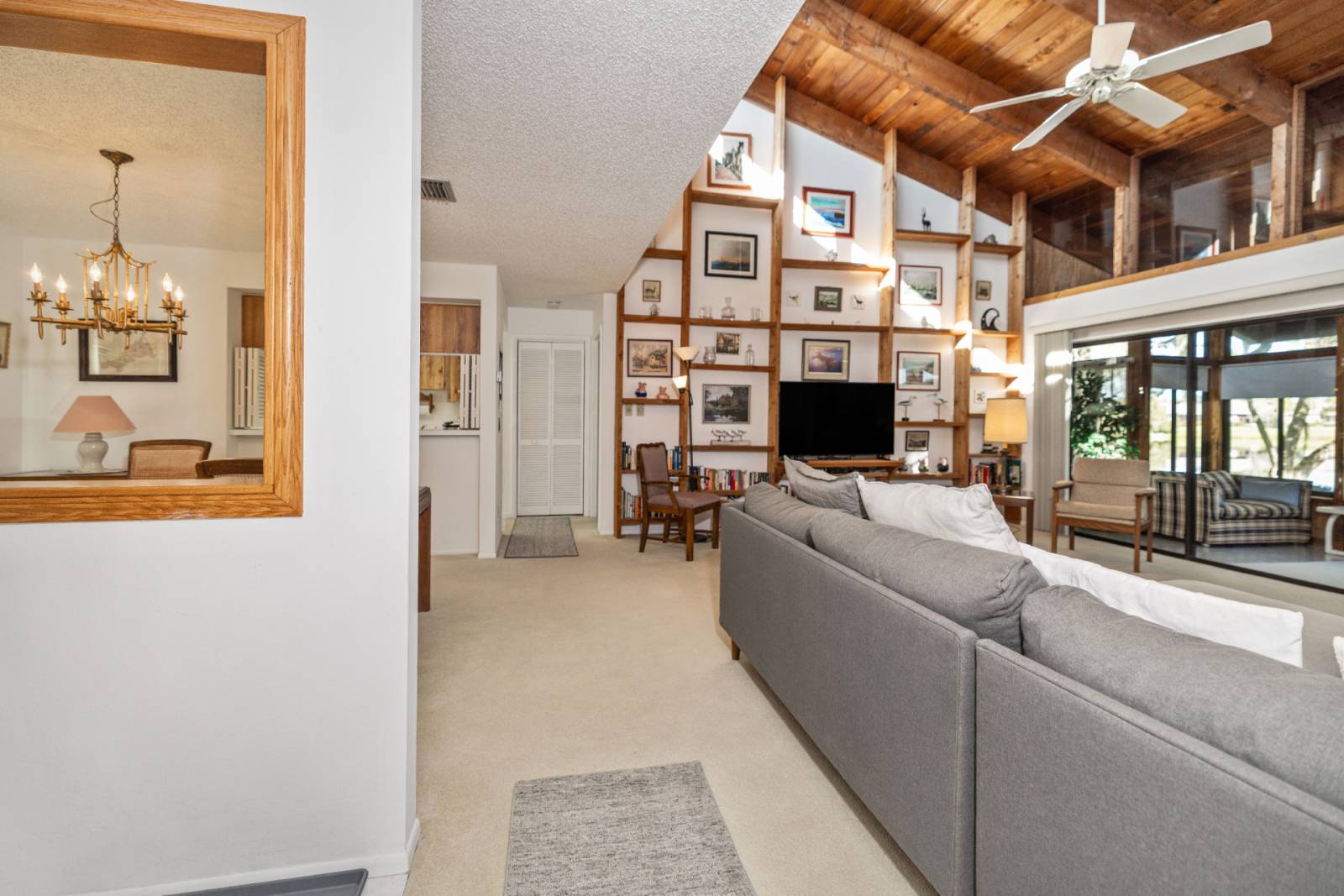 Enjoy your mornings or unwind in the evenings in the bright Florida room, where large windows frame peaceful water views and bring the outdoors in. The home features a functional layout ideal for extended stays, whether you’re relocating, working remotely, or simply enjoying an extended Florida getaway.