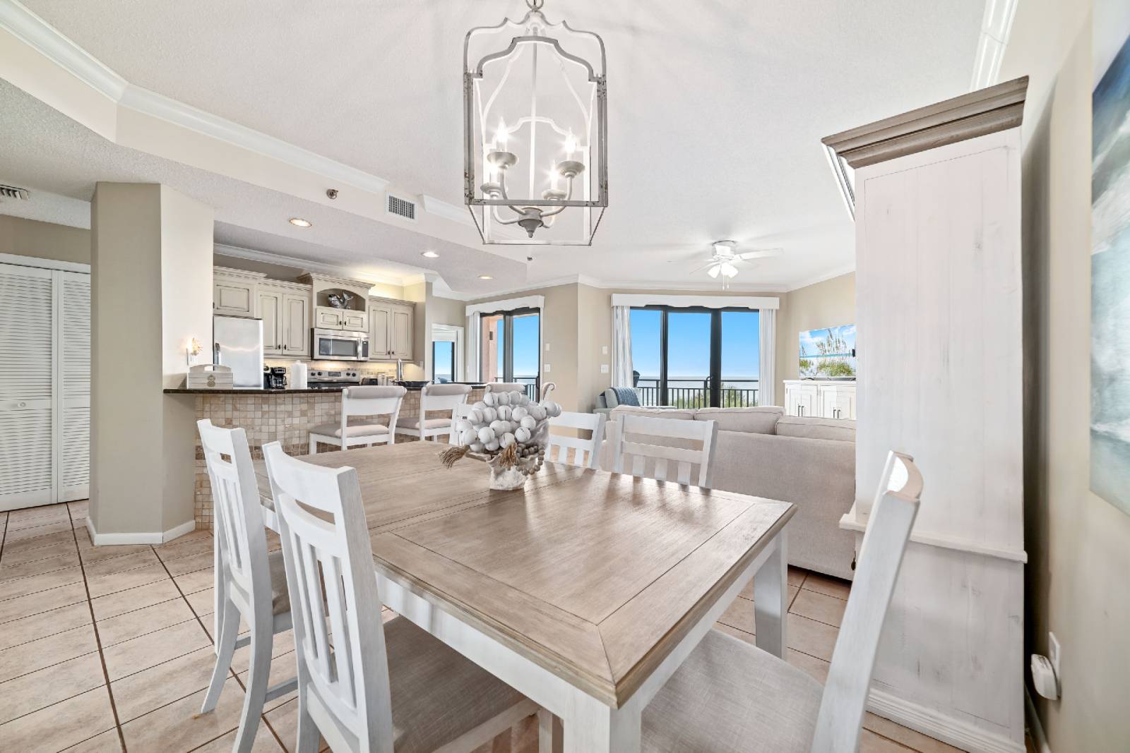 • Fully equipped kitchen with everything needed in your home away from home. Dining area seats six, plus four barstools for additional seating.