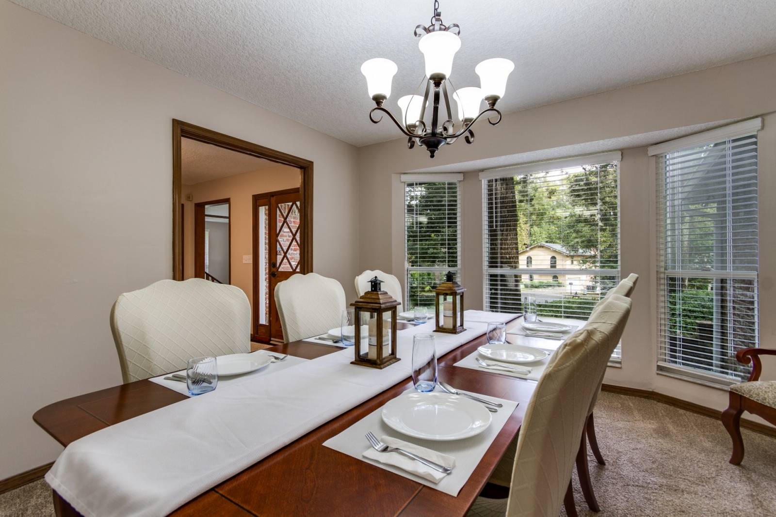 Linens & towels are provided. Excessive Stains, Damage or loss of the Linens will result in a $50 Charge. An initial supply of paper products is provided. Extra items needed are the responsibility of the Tenant. Limited cleaning supplies are provided. There is a $50 fee to restage the house if furniture is moved around and not returned to its original place.
