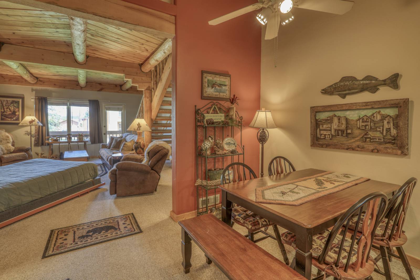 Enjoy your Colorado getaway in this charming, pet friendly, Treehouse! This log cabin style condo is centrally located near all uptown dining, shopping and Pagosa local's favorite coffee shop, Higher Grounds, you will love coming home after a day of adventure or a relaxing afternoon soaking in the healing waters Pagosa Springs is famous for! With its well appointed full kitchen and cozy dining room, this condo has everything you need. The living area has a TV, electric fireplace, ample seating and a Murphy bed. The private deck has a patio table and chairs and is accessible from the living room. This home is ideal for 2 people and their pups looking to escape to the mountains and unwind. Whether it be starting your day of play by sipping fresh coffee on the covered deck or unwinding with an evening movie, this condo is cozy, charming, and just what you need!