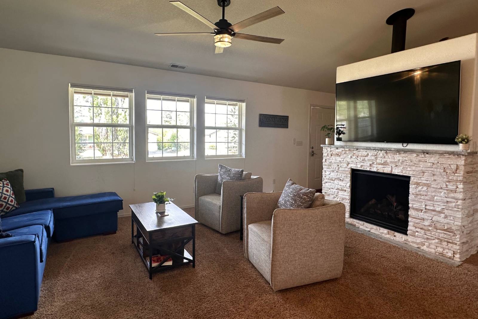 There is a garage for your convenience as well as additional seating at the front door with stunning views of Pagosa Peak. There are kayaks for your pleasure and the walking path is half a minute away! Come make the most of your next vacation in our beautiful home!