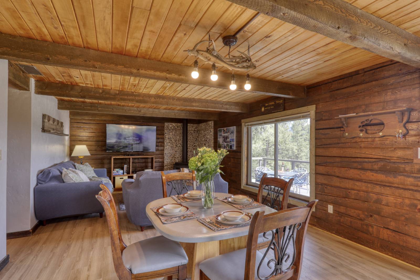 San Juan Cabin is a charming mountain cabin nestled in the rolling hills of the San Juan River Village. You'll enjoy beautiful sunrise views of the San Juan Mountains in the morning and frequent visits from neighborhood deer from the cabin's cozy but spacious living room. Or you can simply relax and stargaze on the large front deck after a day of adventure. There is plenty of space and seating for outdoor cooking and dining as well as an outdoor fire pit for roasting the perfect marshmallow. San Juan Cabin is the perfect destination for your next Colorado escape.