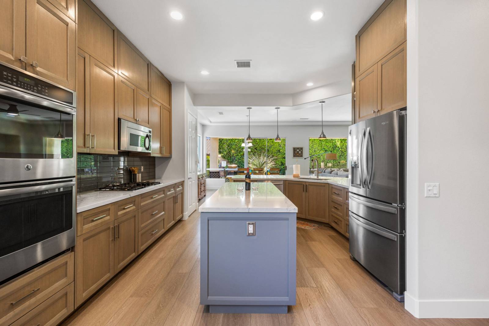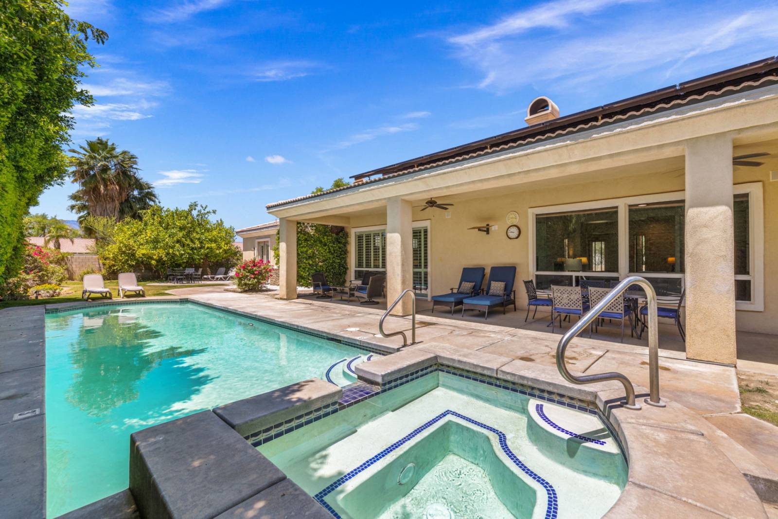 Leave the cares of the outside world behind as you step onto the covered Southwest Facing Patio. Enjoy one of the unique pleasures of Desert Living by cooking up something on the new Gas BBQ grill and dining Al Fresco under the desert zillion stars at the table for 6. Or, for those charcoal aficionados, there is a wonderful Weber Grill. The Sparkling Pool and Spa are the focal point of this totally private backyard which is complete with comfy loungers for soaking up the sun. The Pool is situated to where it gets a fair amount of shade during the day.