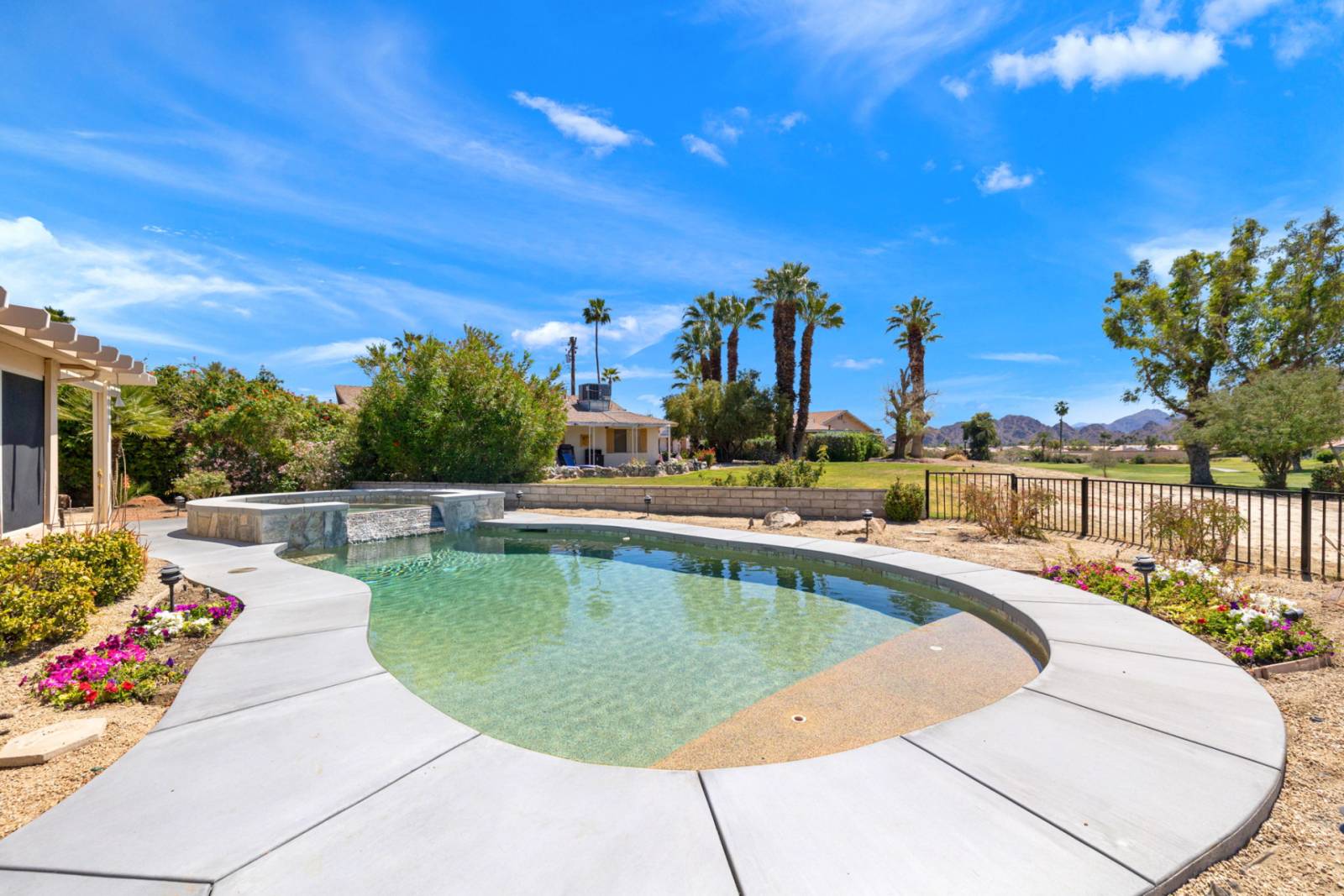 Take in the breathtaking views of the desert mountains and the golf course while enjoying a refreshing swim in the pebble-tech pool. This beautiful home boasts a south-facing backyard that provides a wide range of comforts. You can cool off in the pool on warmer days or warm up in the spa on cooler nights. The backyard also has a screened patio with a dining table for four, comfortable sectional seating, and an outdoor fireplace. For those who enjoy grilling, a four-burner propane BBQ is available.