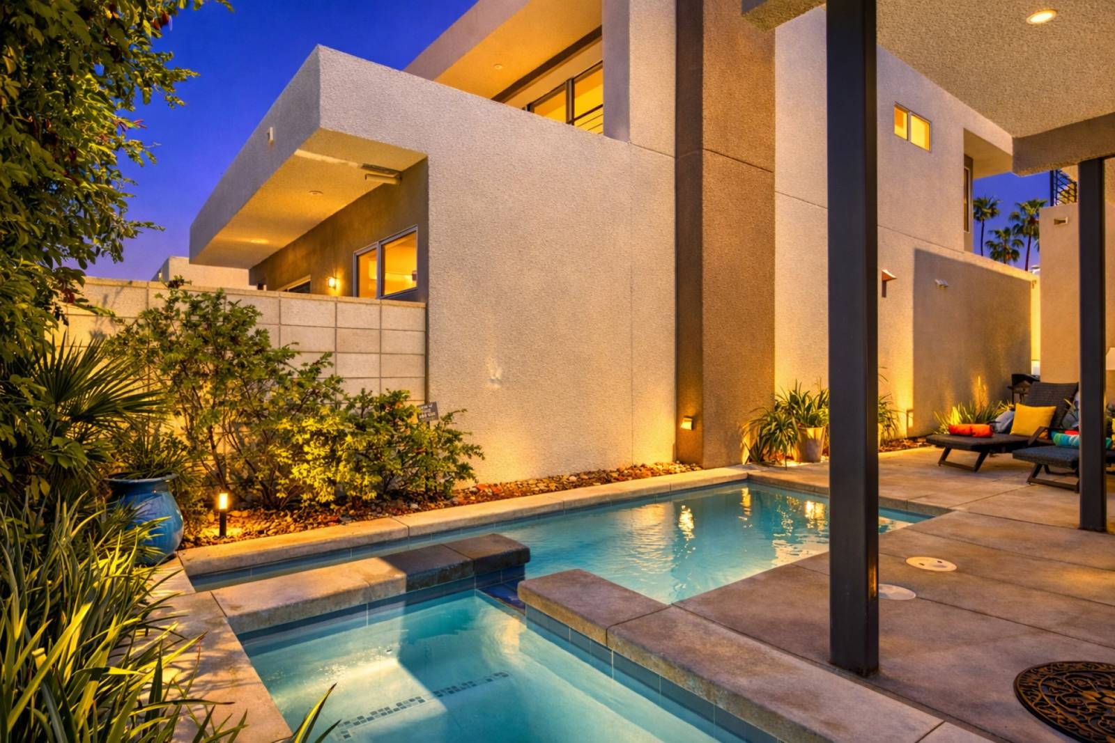 The sparkling pool and soothing spa take center stage, inviting long, sun-soaked afternoons or peaceful evening dips beneath the desert sky. Optional pool heat is available for $65 per night. We recommend adding heat between October and May. With this option, your pool will be preheated to a comfortable 83°F before your arrival. You will also be able to heat the spa, which is included in your booking. Daily pool heating fees are based on natural gas prices in California and the pool's size.