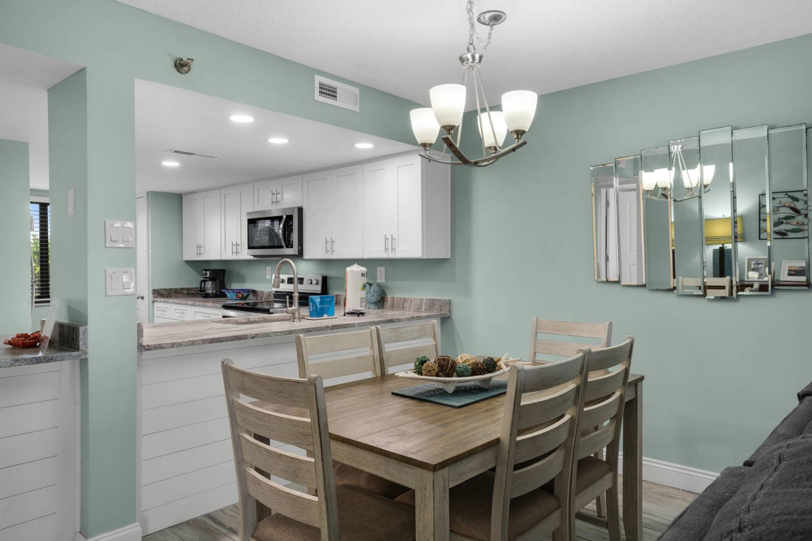This stunning, recently remodeled ground-floor condo eliminates the hassle of stairs or elevators, making it incredibly convenient. Step out onto your spacious, private patio from the living room or the primary bedroom and soak in breathtaking views of the beautifully landscaped pool area and the beach beyond. The kitchen is fully equipped, ideal for crafting delicious meals or packing a cooler for your beach day. With tasteful decor and recent updates, Commodore 107 has a cozy coastal vibe that will make your Gulf Coast escape truly special. Don’t miss your chance to create lasting memories in this perfect Gulf-front sanctuary!