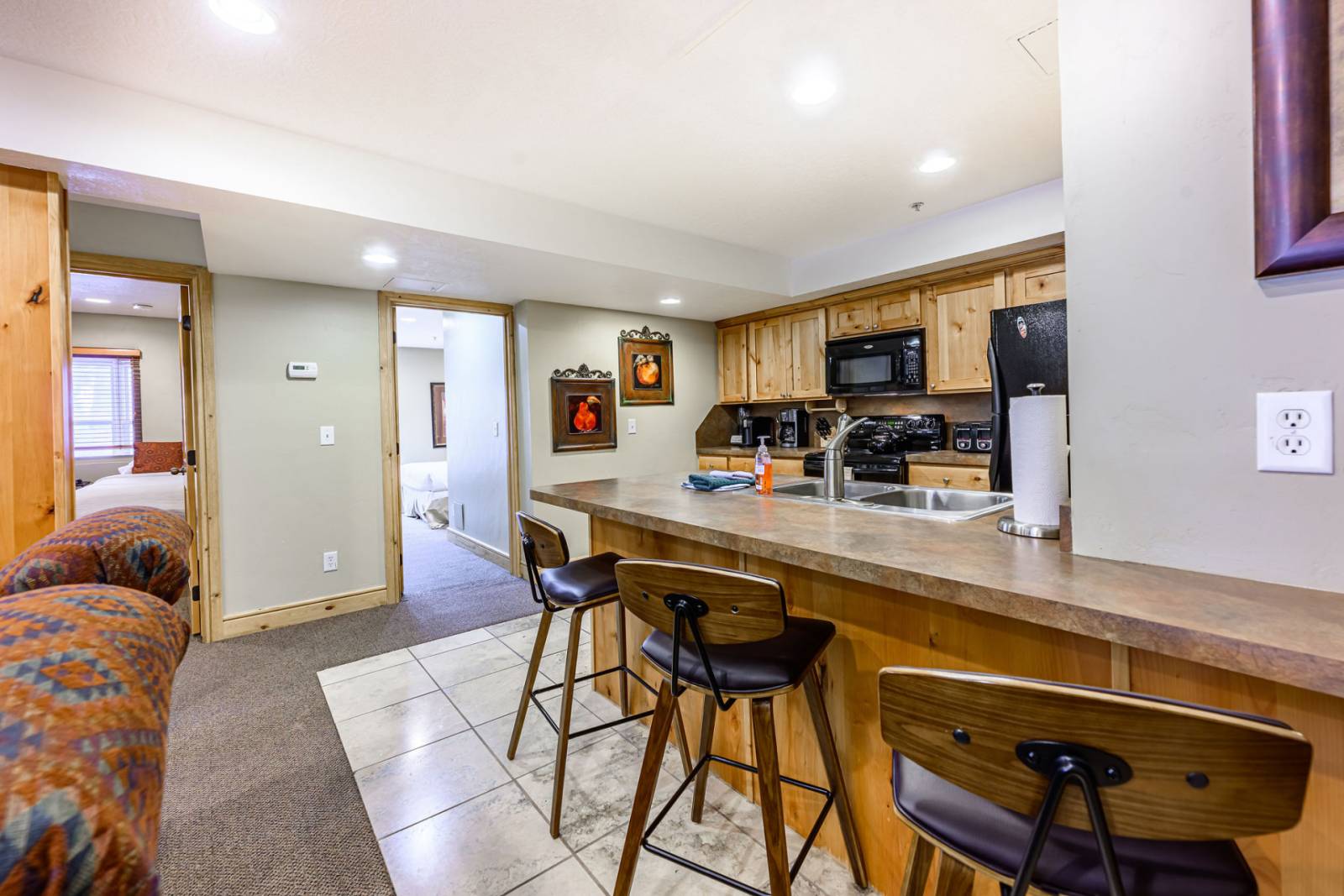 For the price, can’t beat the location. A short walk (2 min) across the parking lot to PCMR. It’s an approximate 1/2 mile walk to Main St. and an approximate 10 min. walk to the nearest grocery store (Fresh Market). As for the unit itself, it was adequate. It had all of the amenities (covered parking, washer/dryer, kitchen, etc). The unit was clean, but a little dated and worn. Given the configuration of the building and the unit itself, there’s not a lot of natural light.