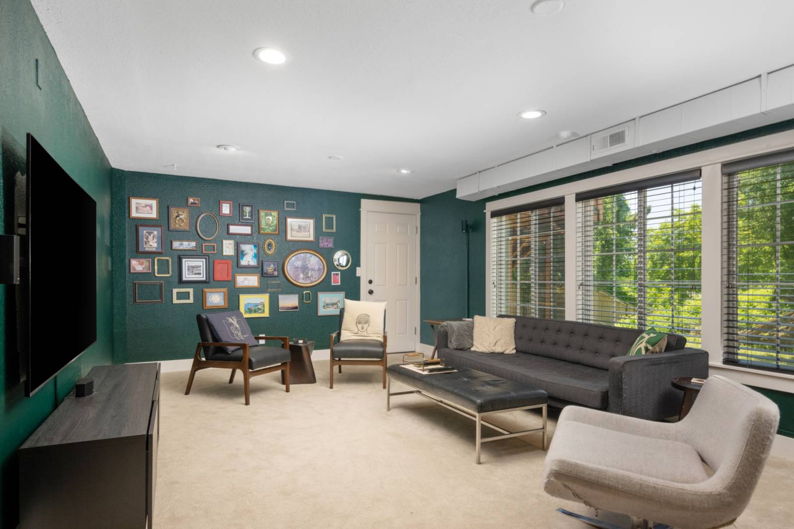 This level also features one of the home’s comfortable bedrooms, a full bathroom, and a private workout room for guests looking to balance out Portland’s legendary dining scene.