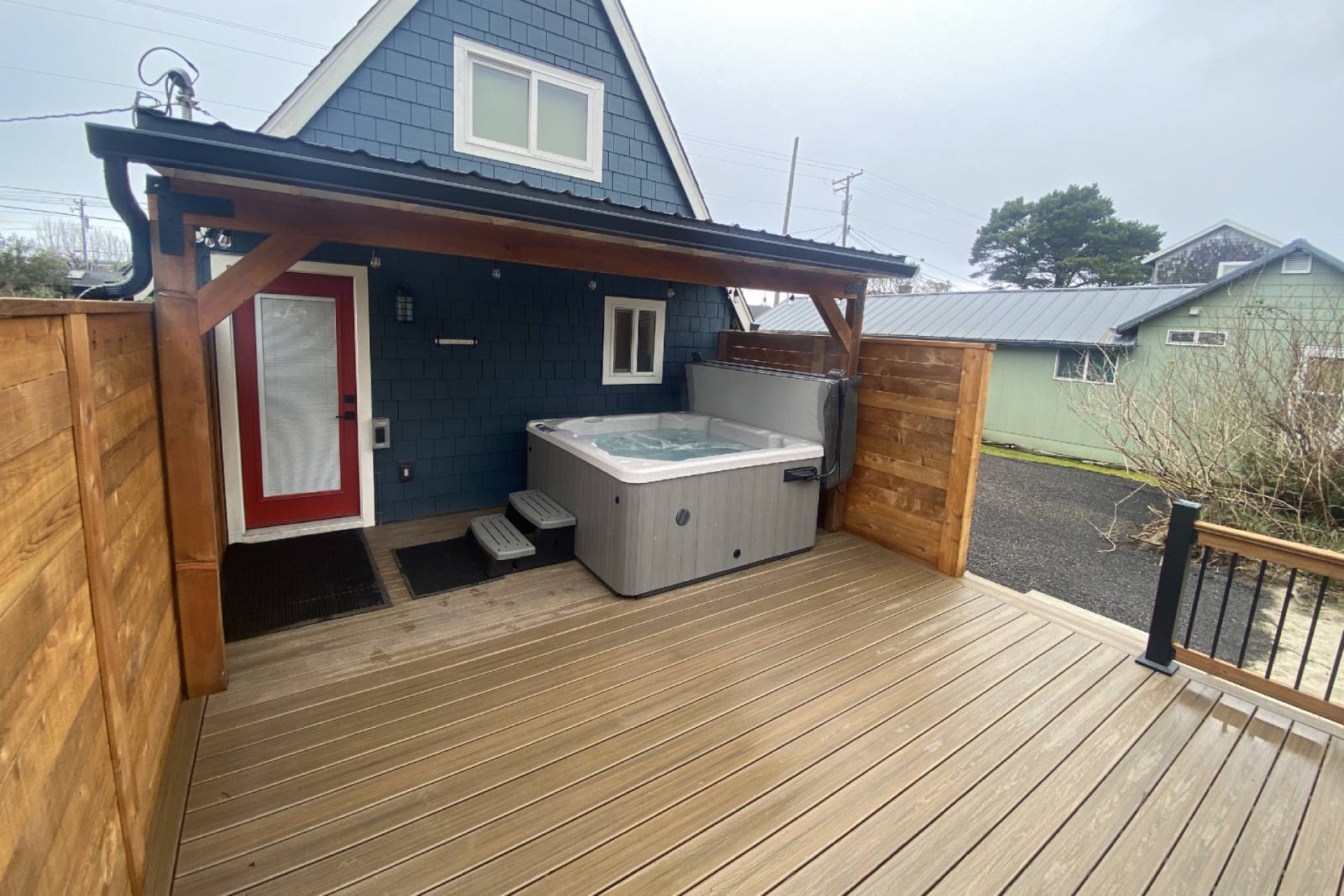 Step outside and discover one of the highlights of the property—the private hot tub. Start your morning soaking in the fresh coastal air or end your day under the stars, listening to the distant sound of waves. It’s the perfect way to relax and recharge.
