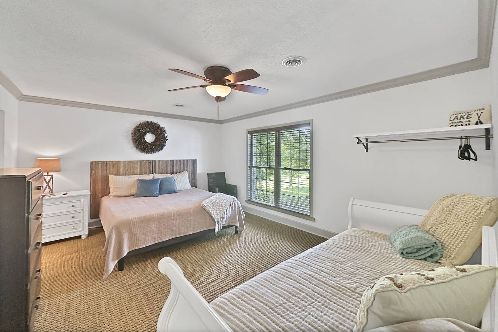 -Primary Suite: A king-size bed, a daybed with trundle, and an ensuite bath; and a beautiful view of the lake.