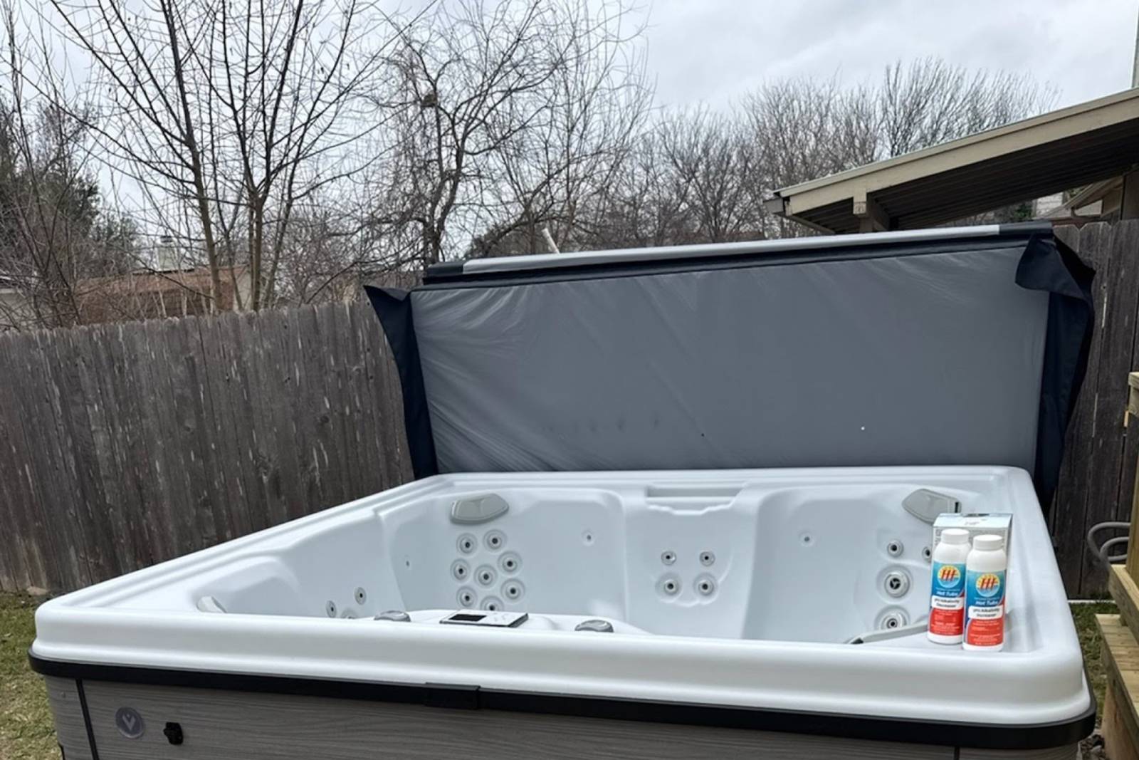Brand new Viking hot tub with mineral salts for a spa-like soak
