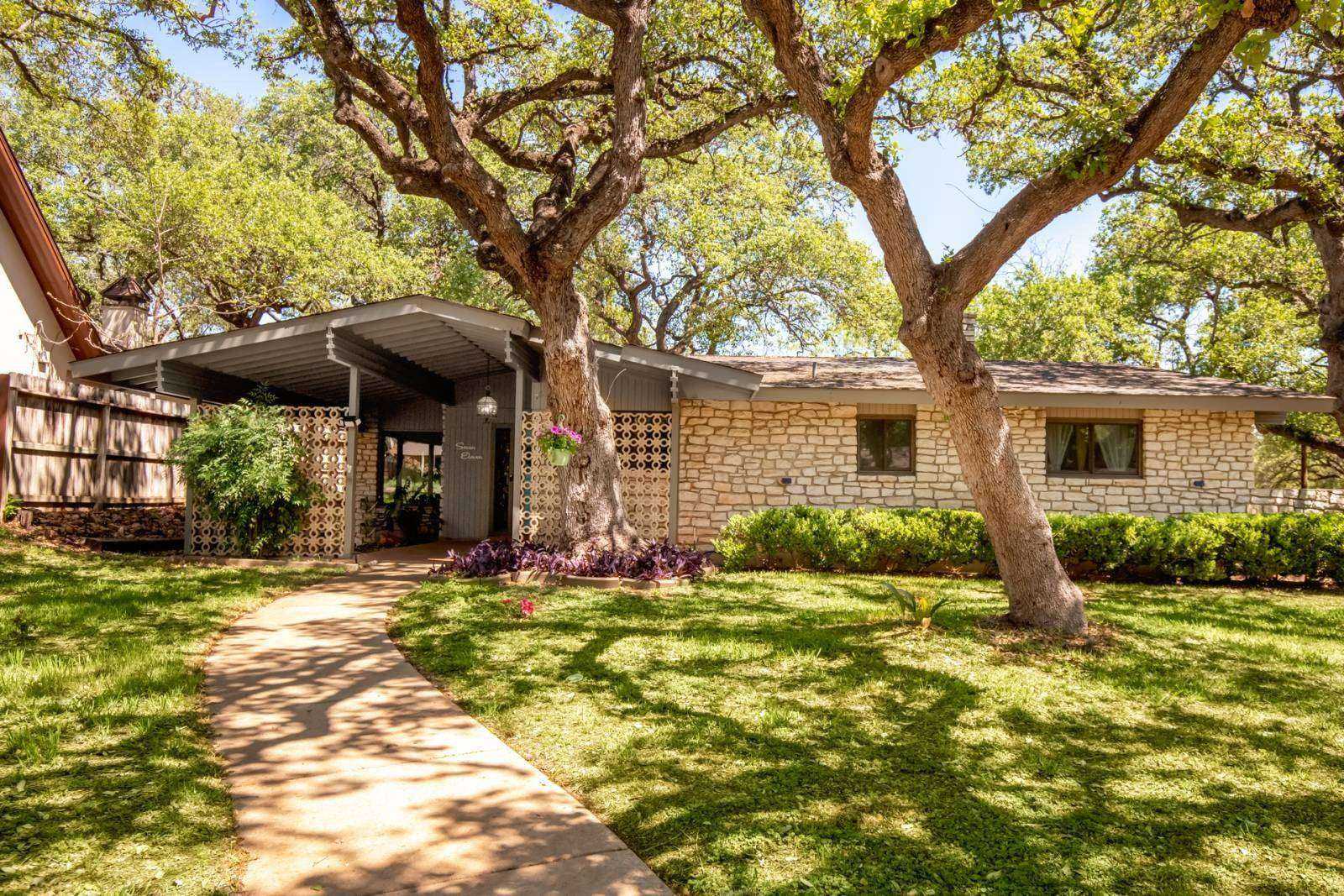 NEW LISTING! Welcome to Bella Patricia, a serene retreat in the heart of the picturesque Harmony Hills neighborhood! Step into the timeless allure of this 1960s retro retreat, nestled on an oversized corner lot amidst majestic oak trees. As you enter, you'll be embraced by the warmth of the formal living and dining area, adorned with original saltillo tiles that exude character and charm. To the right, the family room beckons with mid-century modern touches, featuring exposed beams, and skylights.