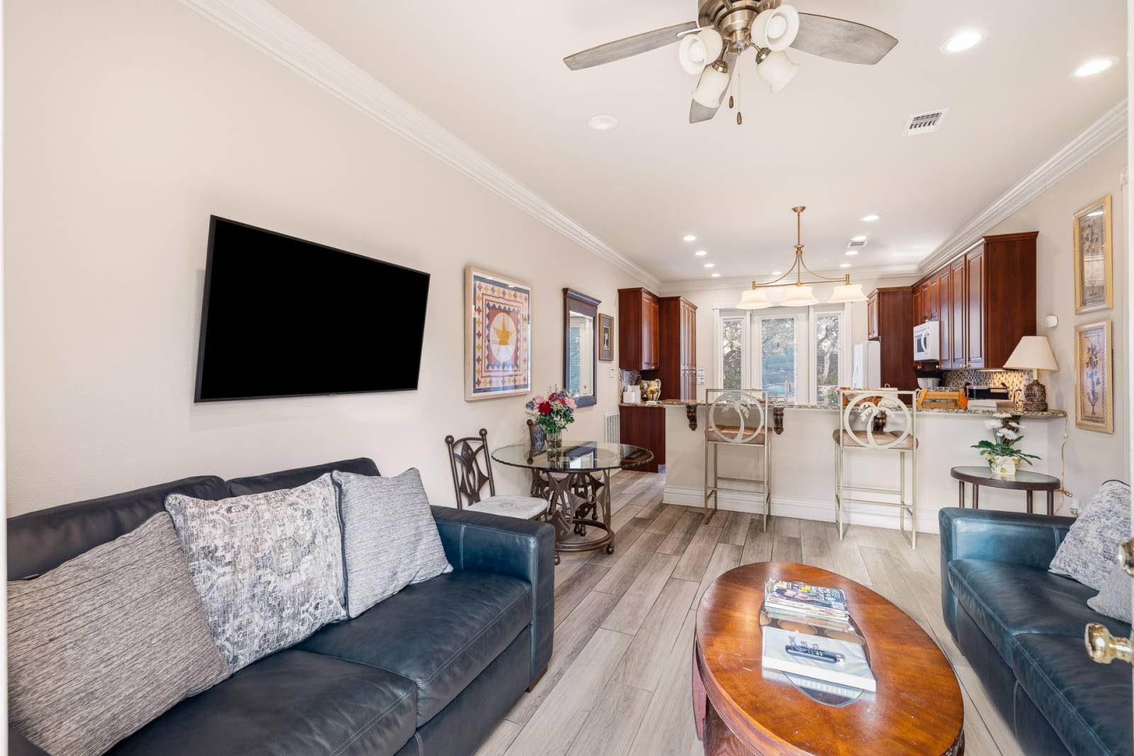 ✔ Comfortable living room with smart HDTV and cozy seating