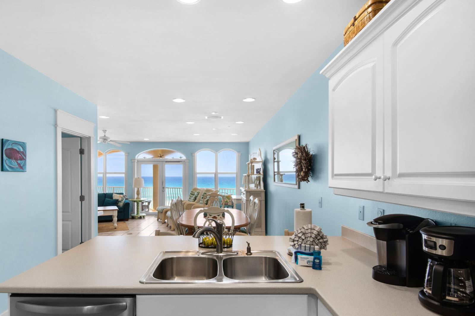 At the end of the hallway you are welcomed into the open concept living/dining area where your eyes will immediately be drawn to the gorgeous gulf views that span from one end of the room to the other. Enjoy your morning cup of coffee, or evening night cap on the condos expansive private gulf front balcony. The views from this balcony you may never want to leave it! Back inside the condos family room, there is a small desk (with a view of course), for the members of your group that can't leave work and/or school behind for the week. The kitchen is fully equipped with everything you need to cook delicious meals on those nights you want to stay in. Whether you are relaxing at the beach, your private balcony, or at the community gulf front pool...you and your family are sure to have a fabulous vacation at Monterey C-201.