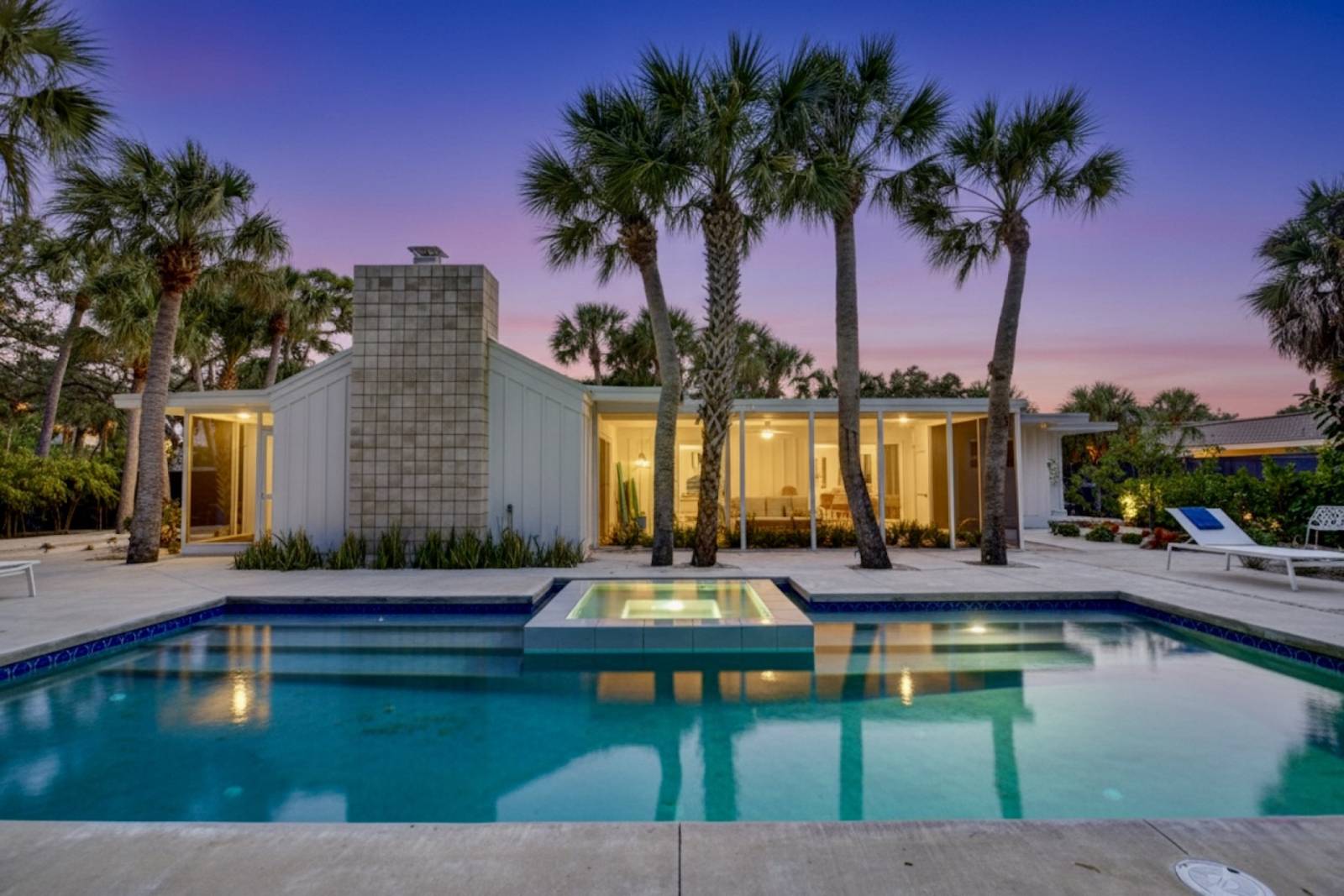 Nestled in one of Siesta Key’s most desirable neighborhoods, Majestic Coastal Escape is a newly renovated mid-century modern masterpiece. This three-bedroom, two-bathroom home offers high-end finishes, curated art, and a private backyard oasis with a modern pool and spa surrounded by lush tropical greenery.