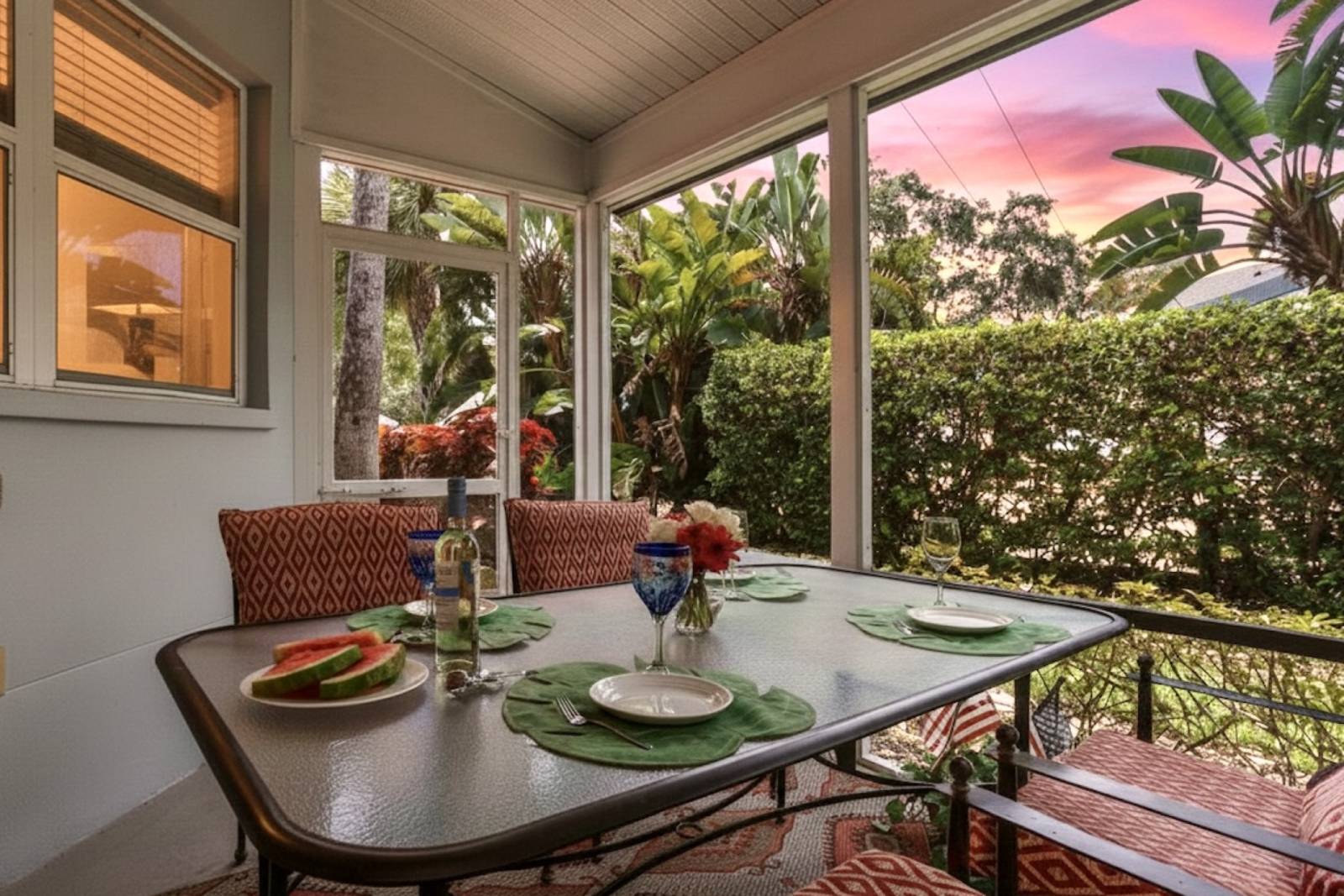 - Comfortable seating area with access to screened lanai views