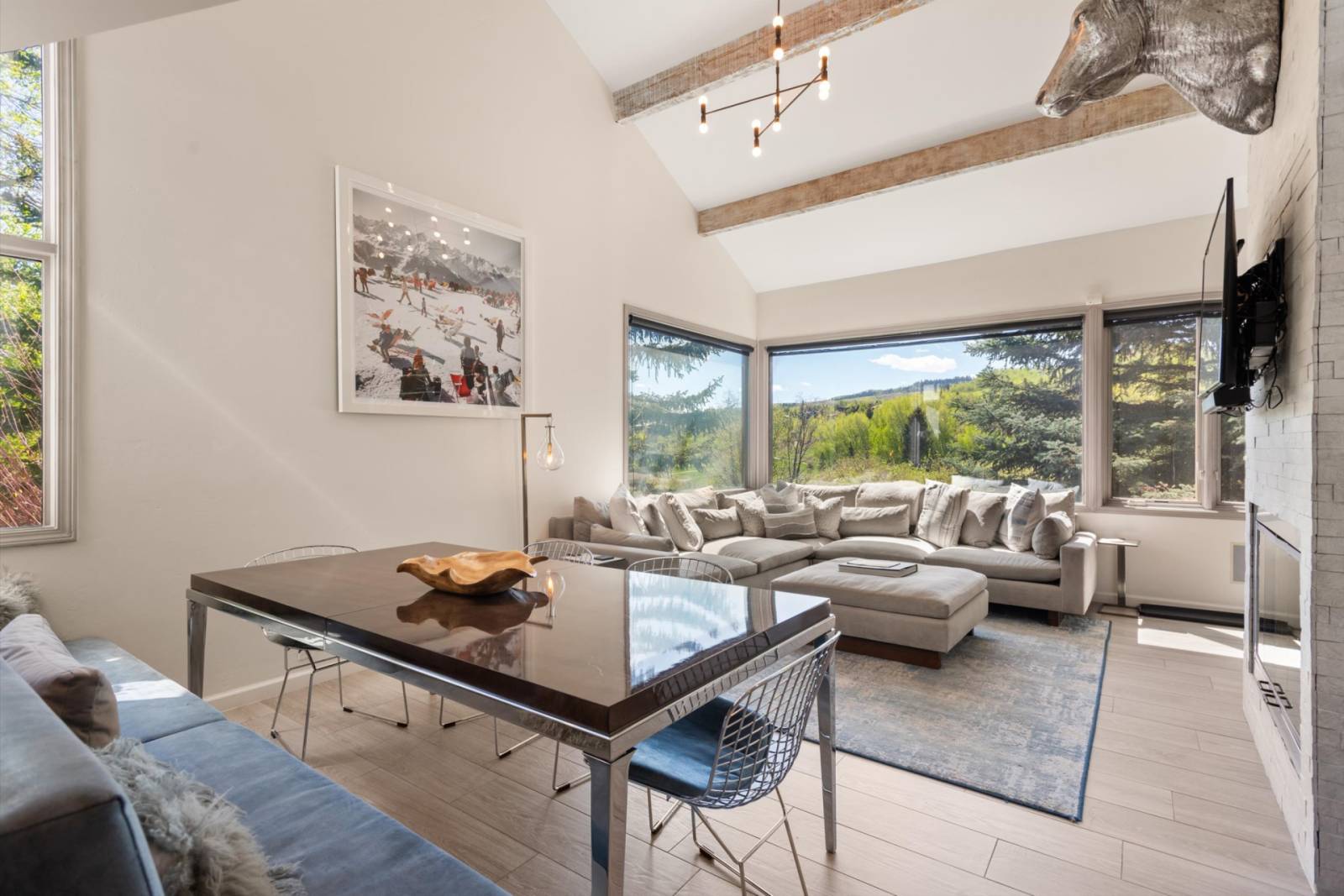 This Snowmass Villas townhouse is the ideal place to bring everyone together to share in a special Snowmass vacation experience. The beautifully refurbished, designer decorated, open-concept living area is a warm and inviting space to create wonderful memories to cherish for a lifetime. The tall vaulted ceilings and huge windows allow you an expansive view of the Snowmass area. You will appreciate the amazing views any time of year!