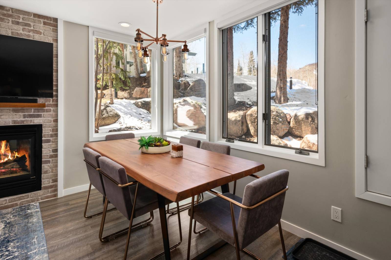 Modern Mountain Style – Updated interiors with gas fireplace and open living space.