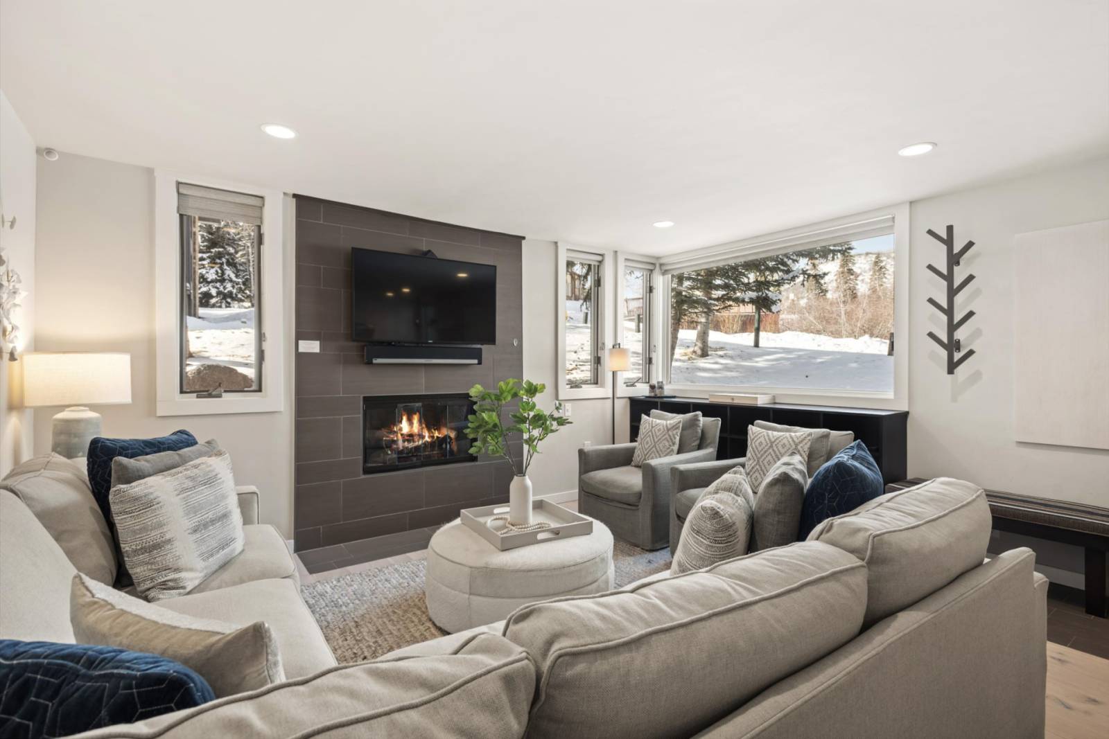*Modern Mountain Style – Updated interiors with gas fireplace and open living space.