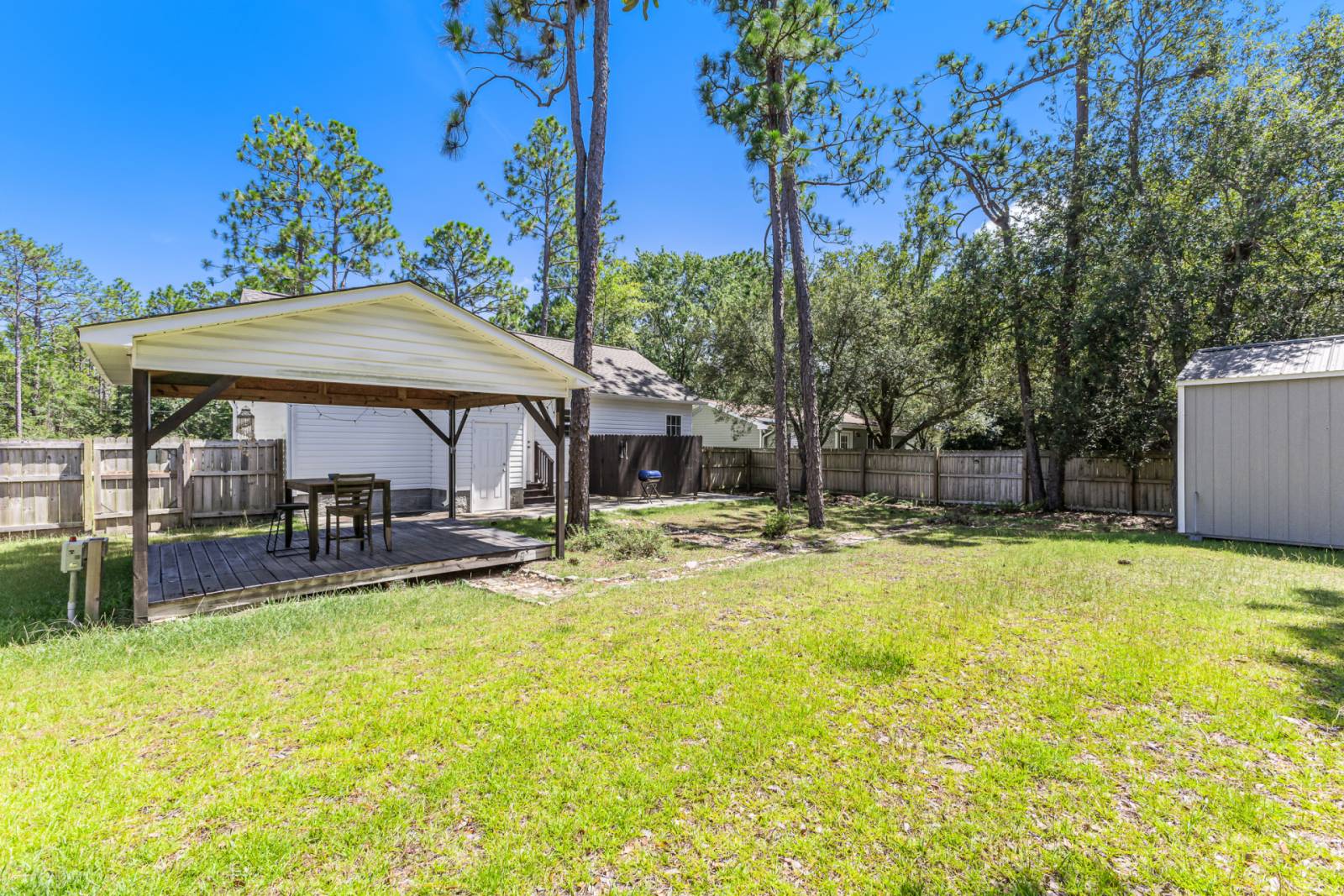 Step outside and enjoy the coastal breeze on the covered front porch, or fire up the charcoal grill for a family cookout. The spacious fenced yard gives your pets plenty of room to stretch their legs safely, and the outdoor shower is ideal for rinsing off sandy toes after a day at the beach.