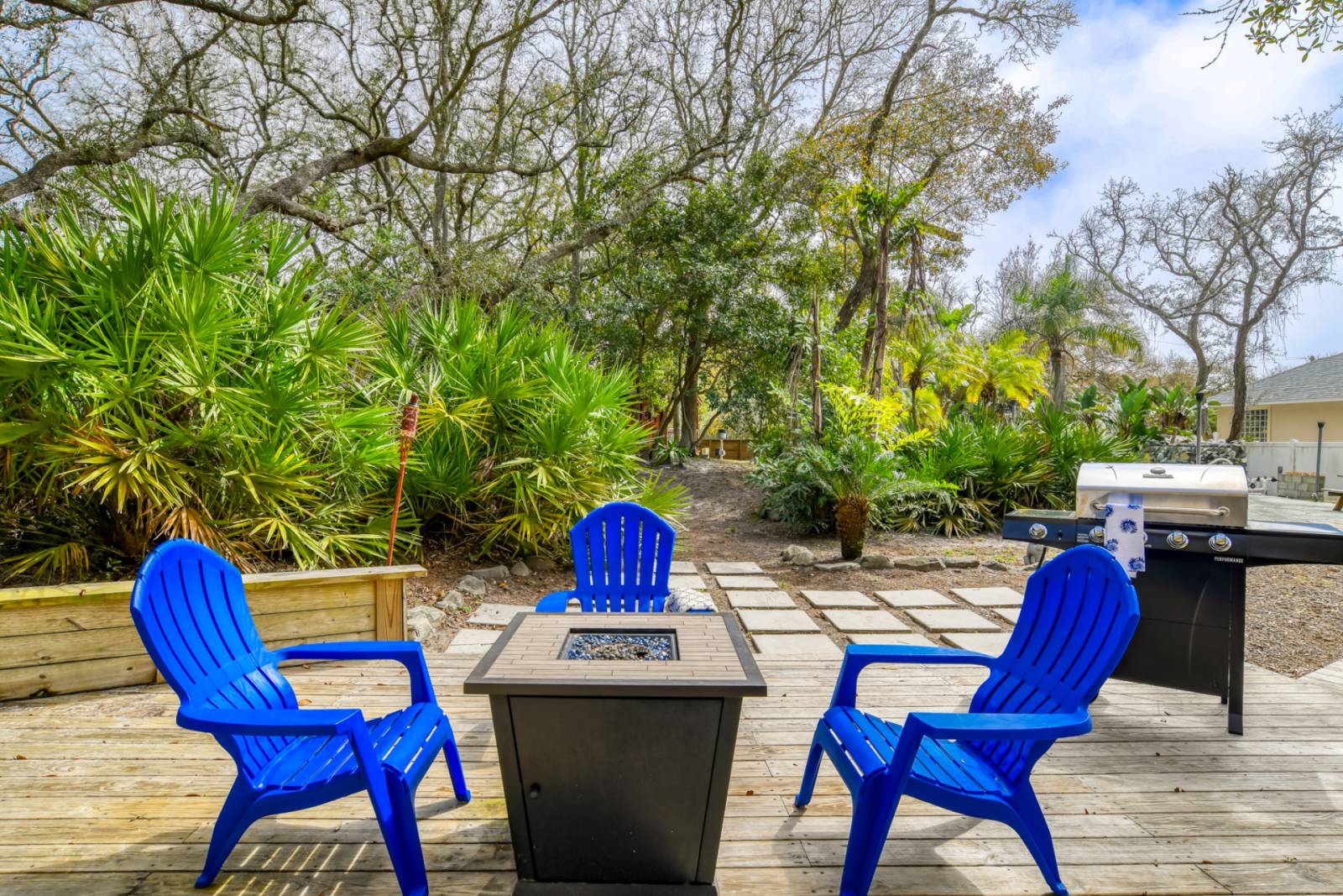 - Picnic table, Adirondack chairs, fire pit, outdoor seating