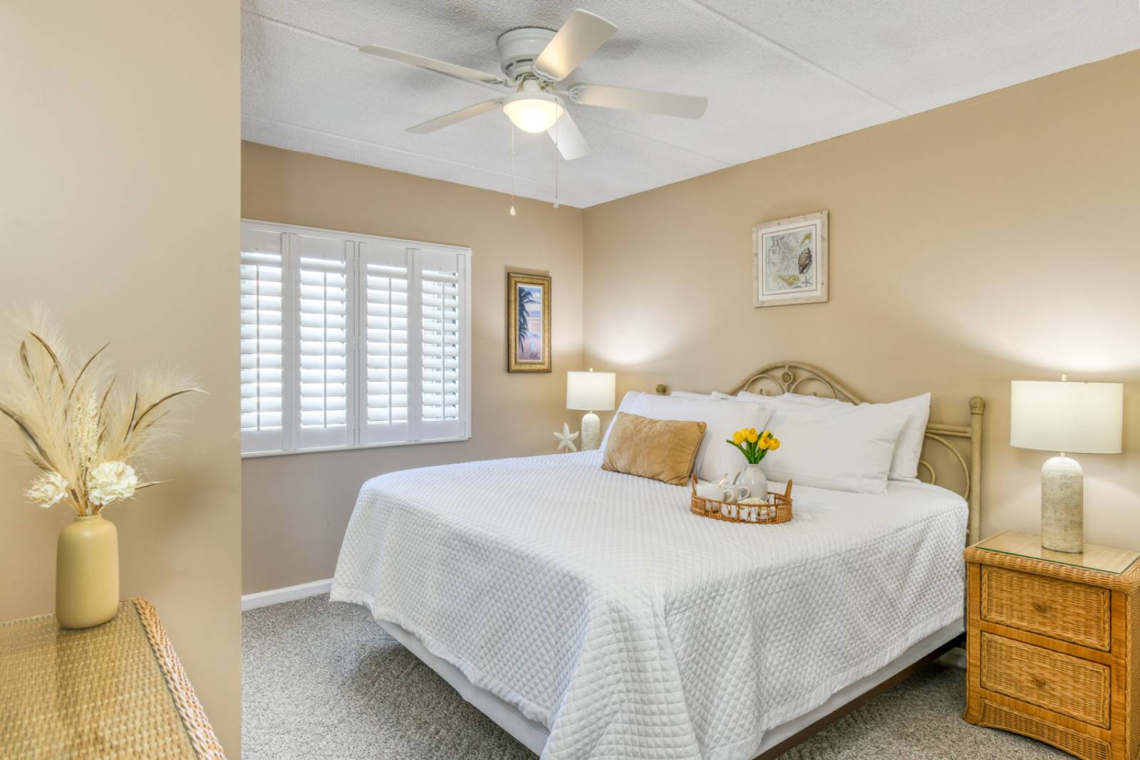 Let your beach dreams come true in this updated and freshly decorated condo, where you will feel the beach vibes from the moment you step inside. Prepare your favorite foods and drinks in the fully stocked kitchen, then gather around the dining table to enjoy them with friends and family. Get cozy in the living room as you enjoy your favorite shows and movies on the large TV, the open floor plan is perfect for making memories together. Step outside onto the private balcony to breathe in the fresh ocean air, this is the perfect spot to begin and end each day. You are sure to rest well in the king bedroom, featuring an en suite full bathroom, and the double twin bedroom, both of which offer plenty of storage space, a smart TV, and are stocked with soft white linens. The two full bathrooms each feature a shower tub combo and are stocked with fresh white towels.
