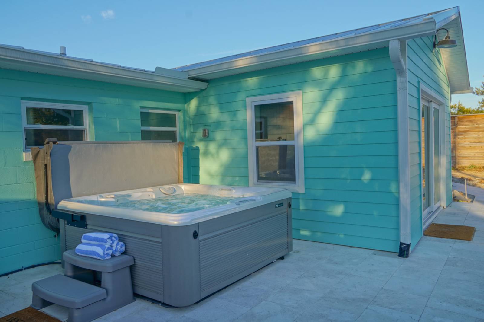 Escape to paradise at Sea Turtle, a completely remodeled home, located just 1.5 miles from beach access and only 2.5 miles from historic downtown St. Augustine. Your getaway will be enhanced by the beautiful coastal decor, brand-new furnishings, and luxurious finishes. The outside of the home is just as spectacular as the inside, with a fully fenced yard and brand-new salt water pool with a sun shelf, hot tub, and tiki bar. Spend your days soaking in the Florida sun as you lounge by the pool or step in for a swim and finish each day under the stars as you relax in the hot tub.