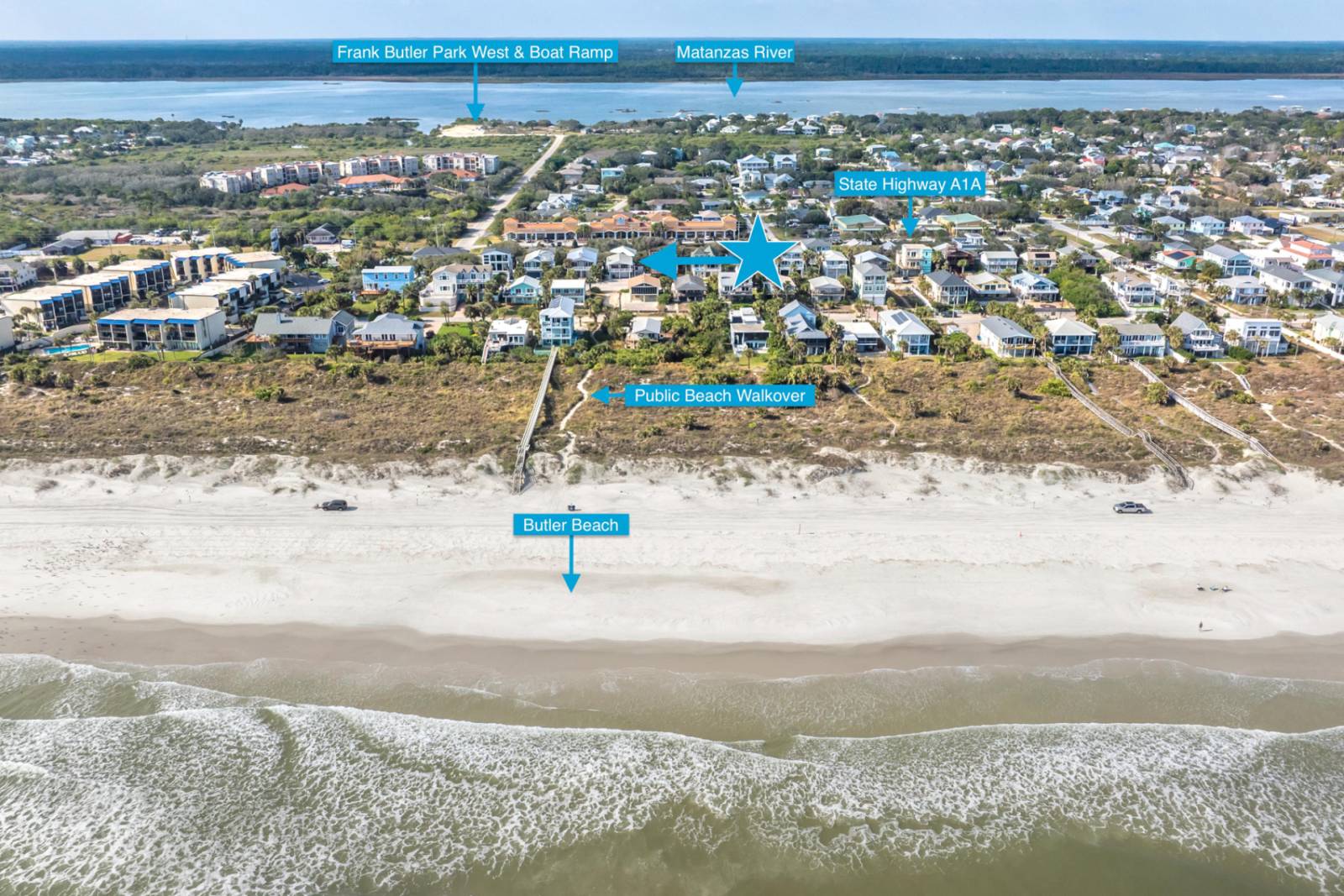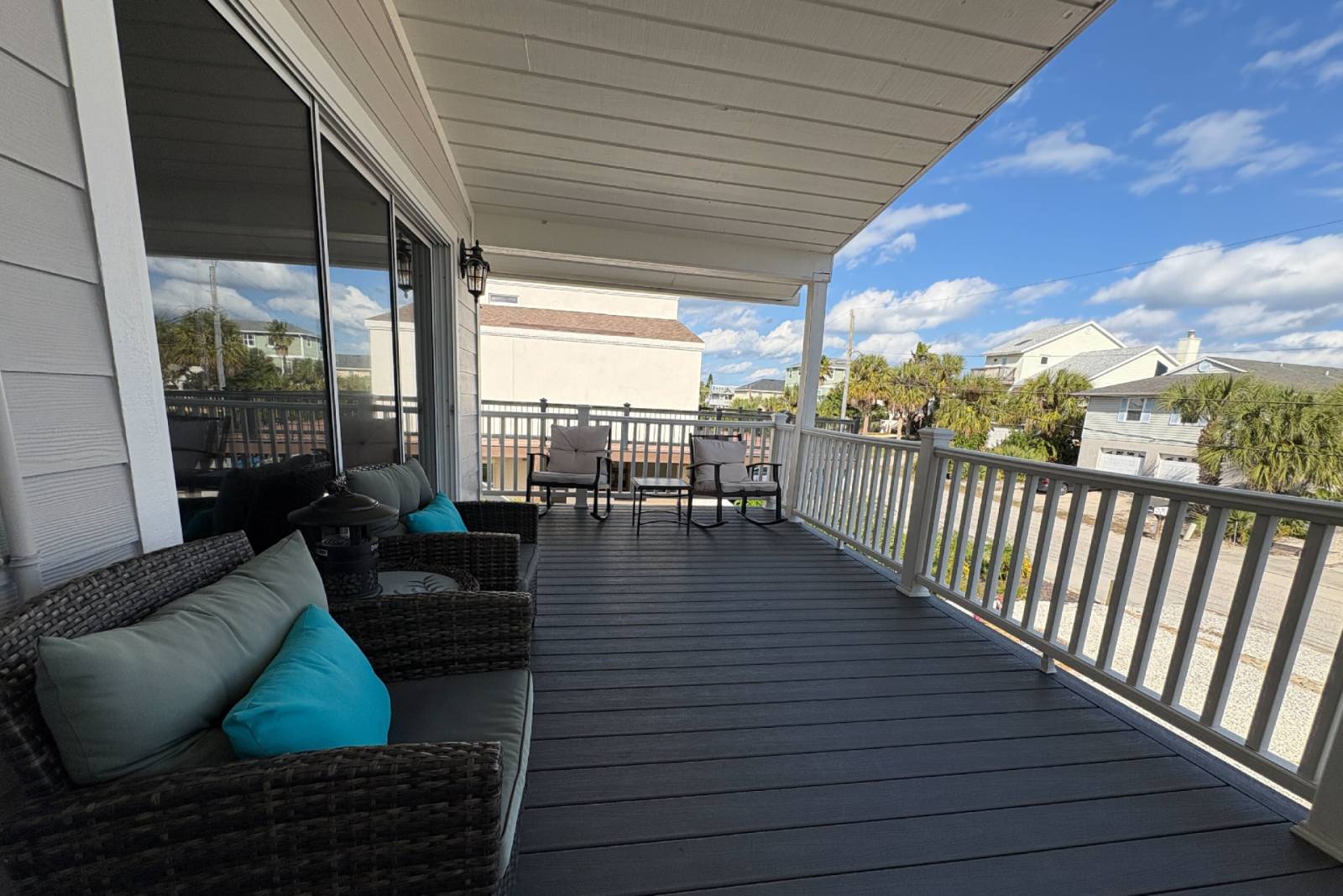 Soak in the incredible ocean views all day at The Turtle's Nest, a spacious and modern home designed for gathering together and making memories. Sip your morning coffee as you watch the sunrise from the spacious front balcony and finish each day taking in the sunset from the back balcony. The private backyard is perfect for lounging, spending time together, and enjoying the hot tub. The fully stocked kitchen has everything you need to prepare your favorite foods and drinks, and there is plenty of seating at the kitchen island and around the dining table. The soft white sand of St. Augustine Beach is just steps away. Healthy dunes and foliage create a perfect place for spotting a variety of wildlife. Watch for gopher tortoises along the beautiful path to the beach and dolphins swimming offshore! Enjoy a number of fine restaurants, bars, local attractions, and parks all within a few minutes' drive.