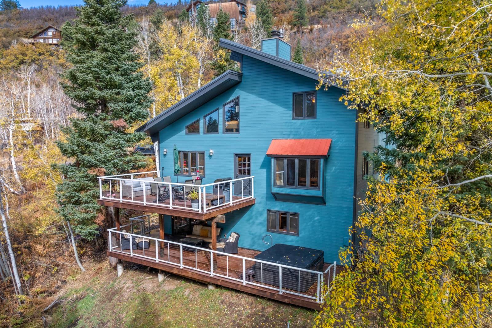 Mt Werner Hideaway is a picturesque mountain home with aesthetic views and serene sounds, secluded in the woods bordering National Forest. The property offers solitude and a tranquil cabin-like setting along and overlooking Burgess Creek, hidden amongst a grove of pines and aspens.