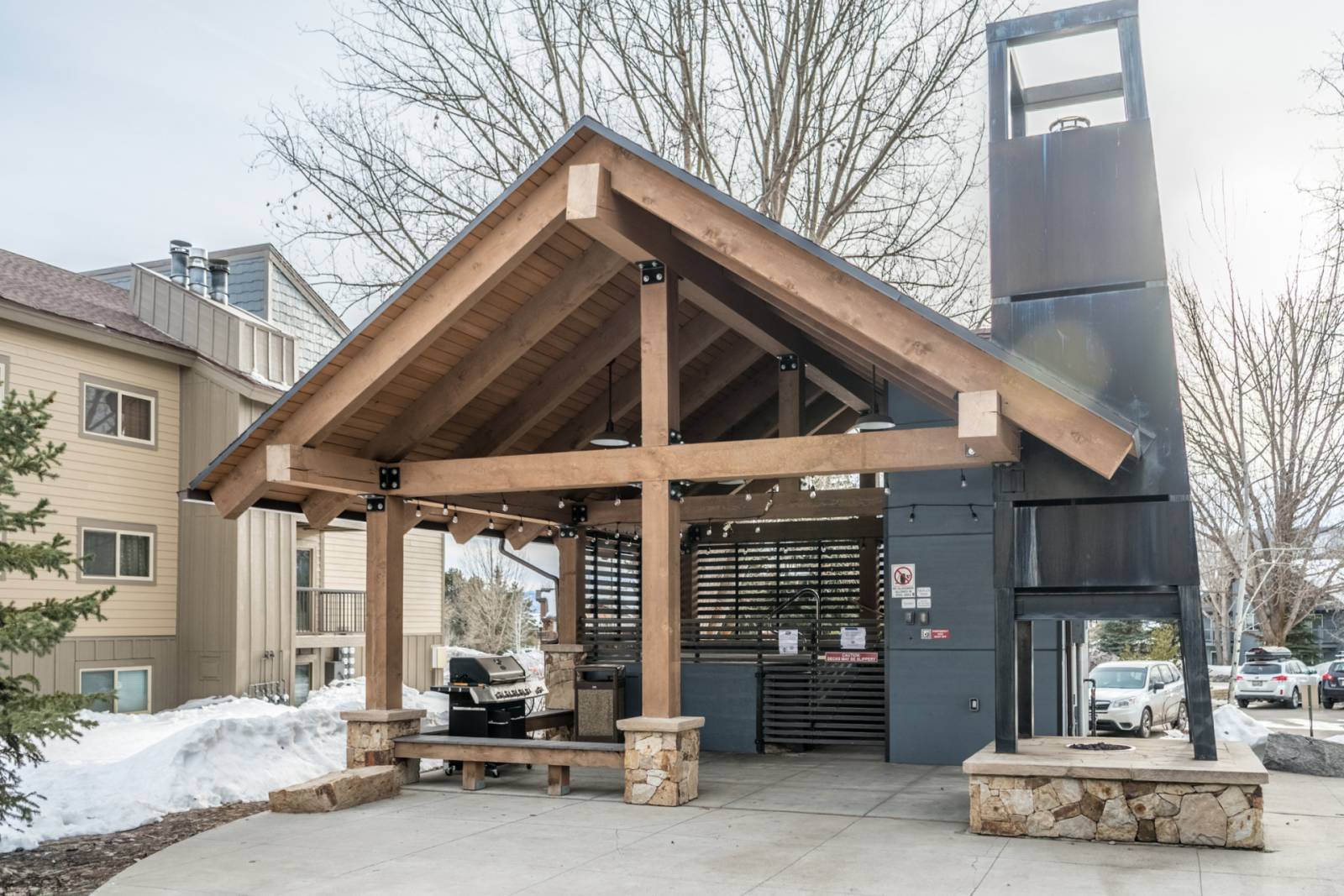 Enjoy a soak in one of the two year-round community hot tubs. There is also a community grill, picnic area, and pool that is open in the summer.
