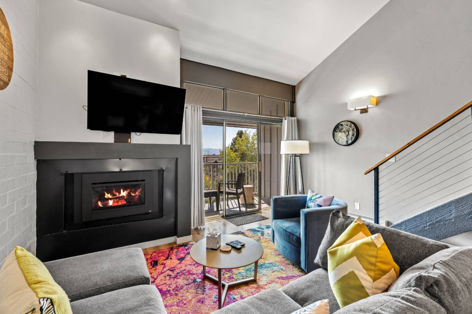 The impeccably designed, immaculate, bright and spacious, two-level, loft-style condo lives like a townhome. Enter the unit into a bright living area with ample comfy seating, vaulted ceilings and a wall of windows overlooking the slopes and ski area.