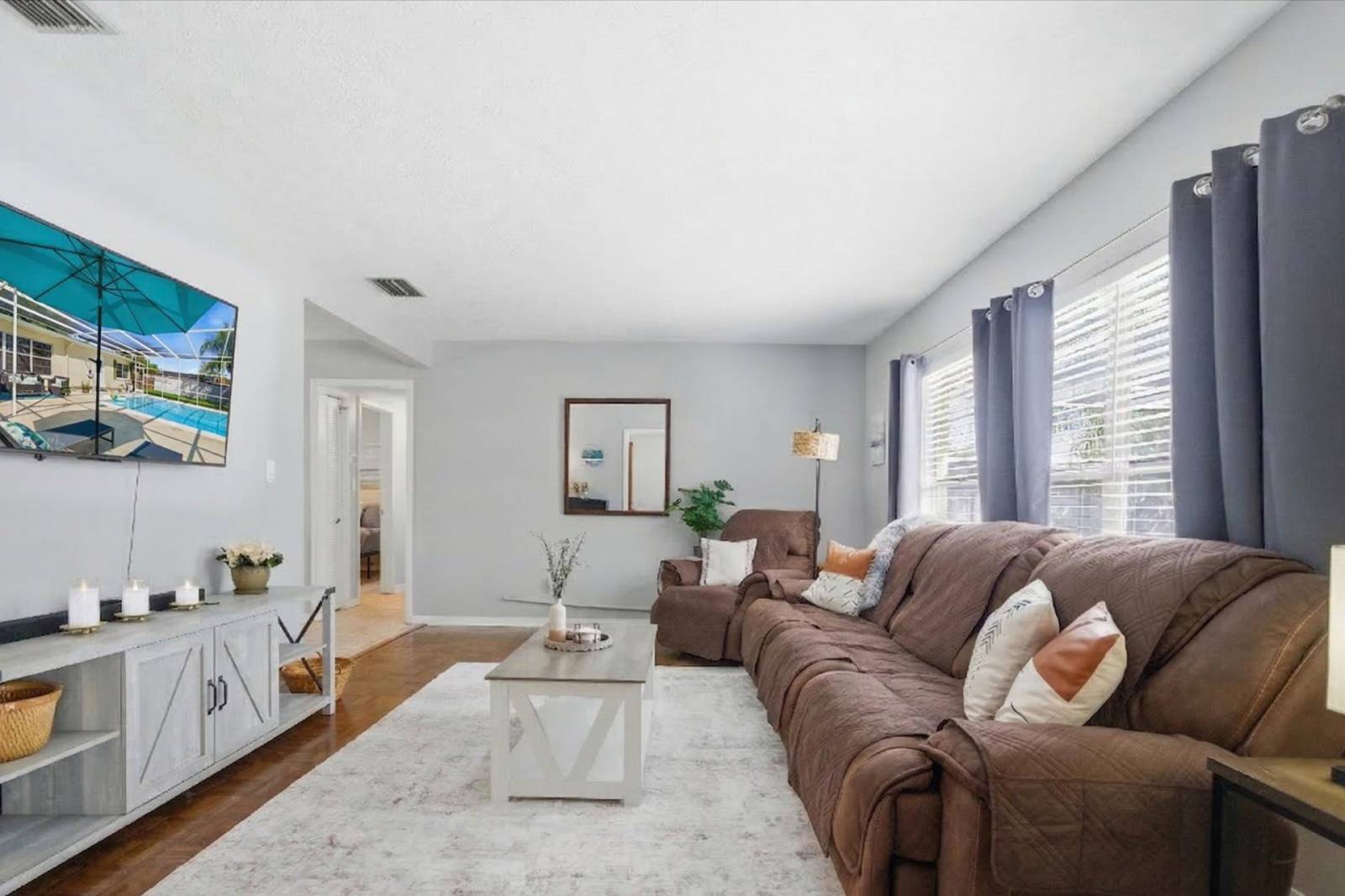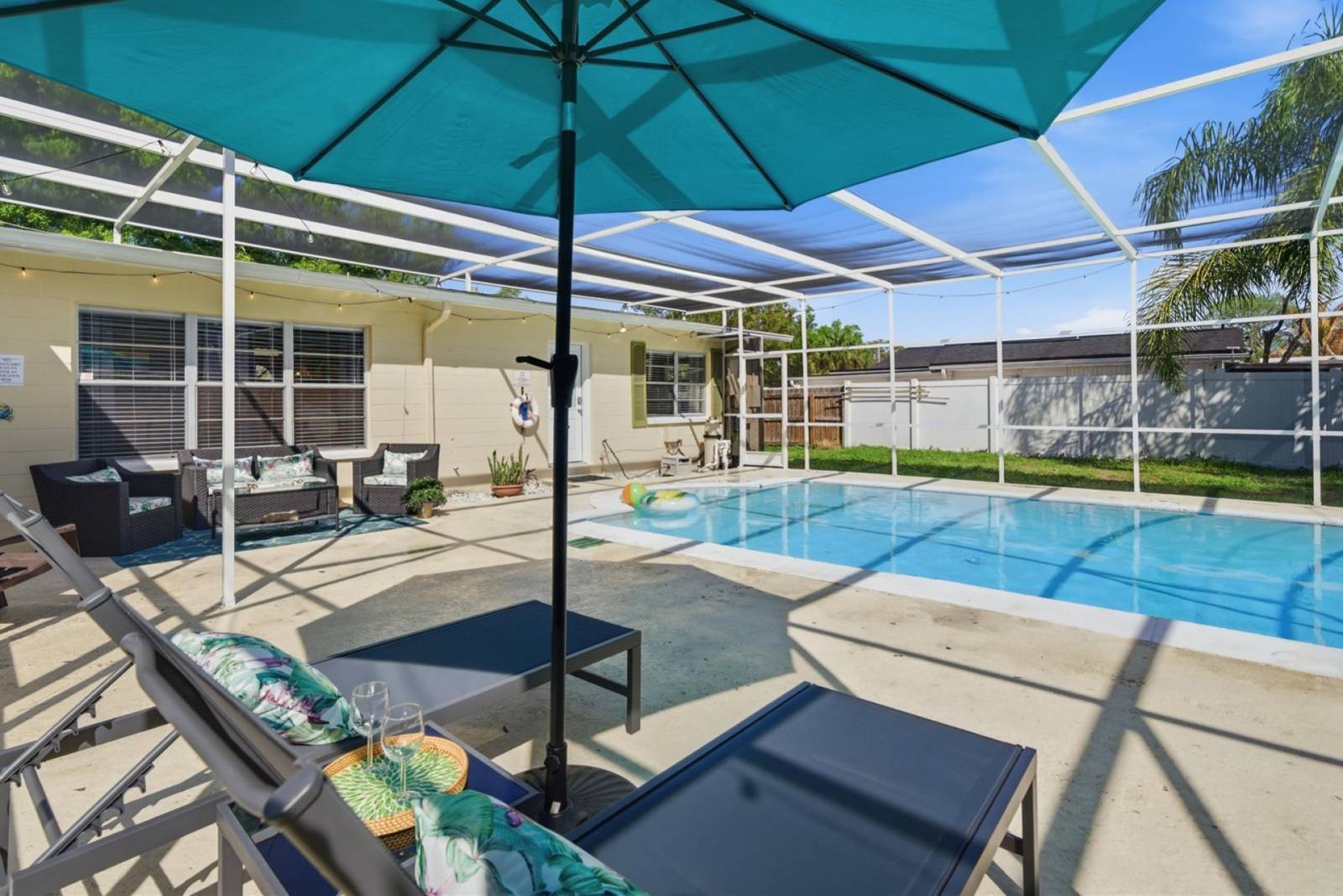 This comfortable home offers plenty of room to relax after a day exploring Tampa. Step outside to your private screened-in pool, ideal for cooling off or enjoying a quiet evening outdoors. The fully fenced backyard adds privacy and makes the home perfect for guests traveling with pets.