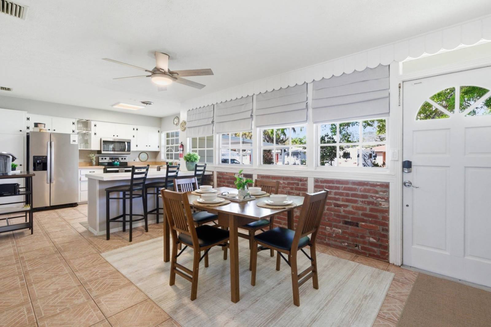 • Dining table with seating for 4, 3 at the breakfast bar