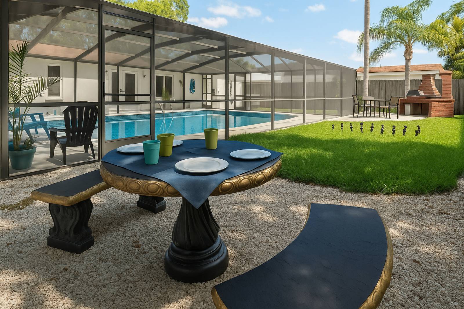 Screened Heated Pool |Serene Patio Lounge Area |Yard Chess |Tranquil Times |Close to RJ Stadium