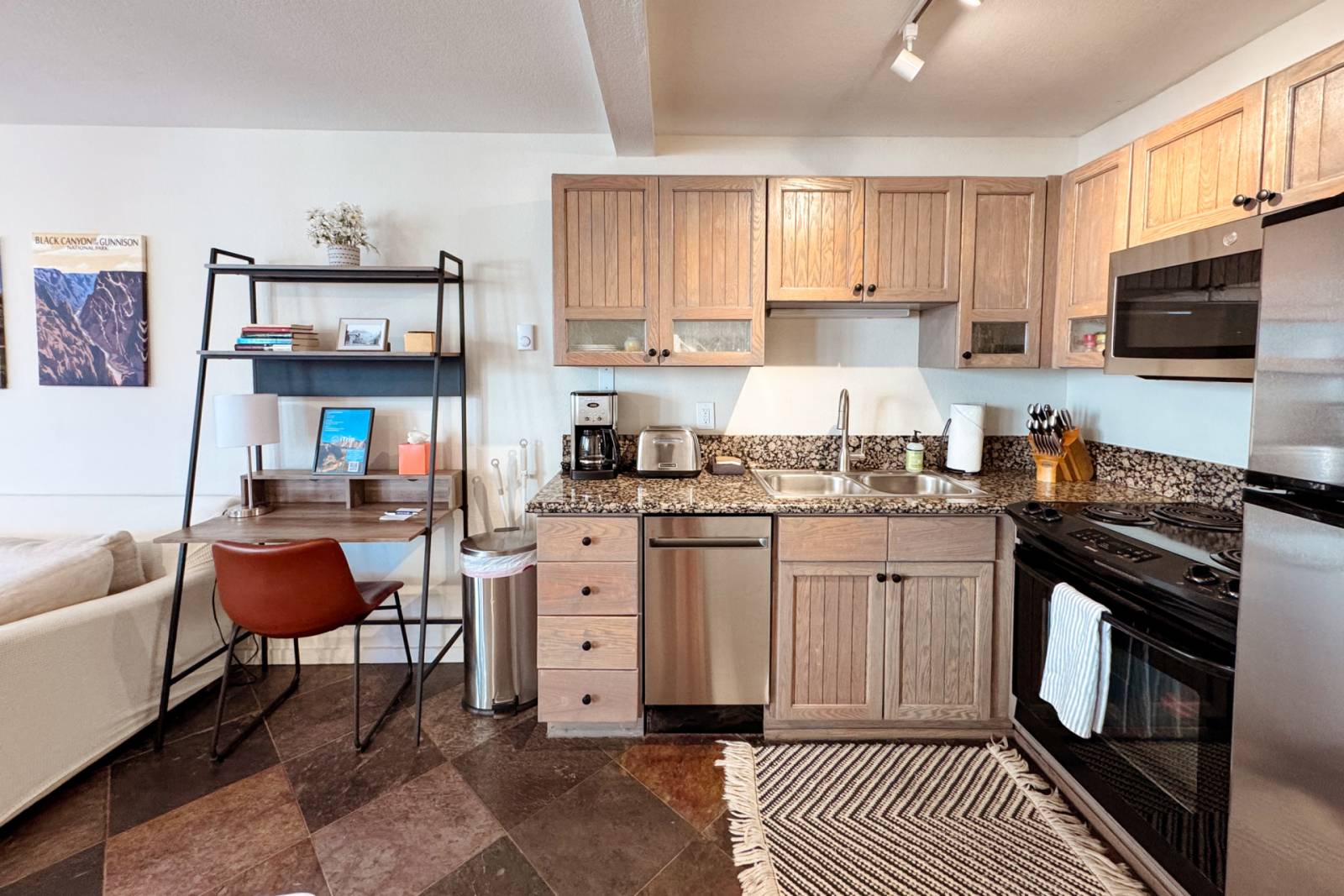 No car? No problem! Take the Gondola to town and get around Mountain Village by riding the Gondola to the market and back. Everything in the village core is all walking distance out your doorstep, including the Gondola. The convenience and location of this condominium are hard to beat, and provides a great way to experience the year round magic of Telluride.