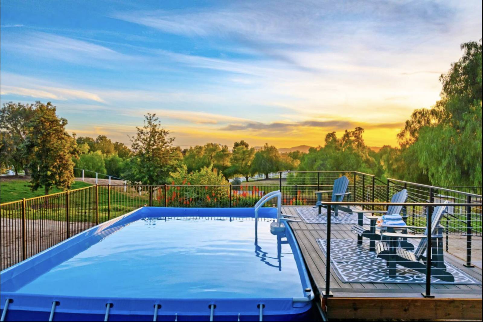 For those who want a splash of fun, the backyard also includes a pool. It’s an above-ground style
