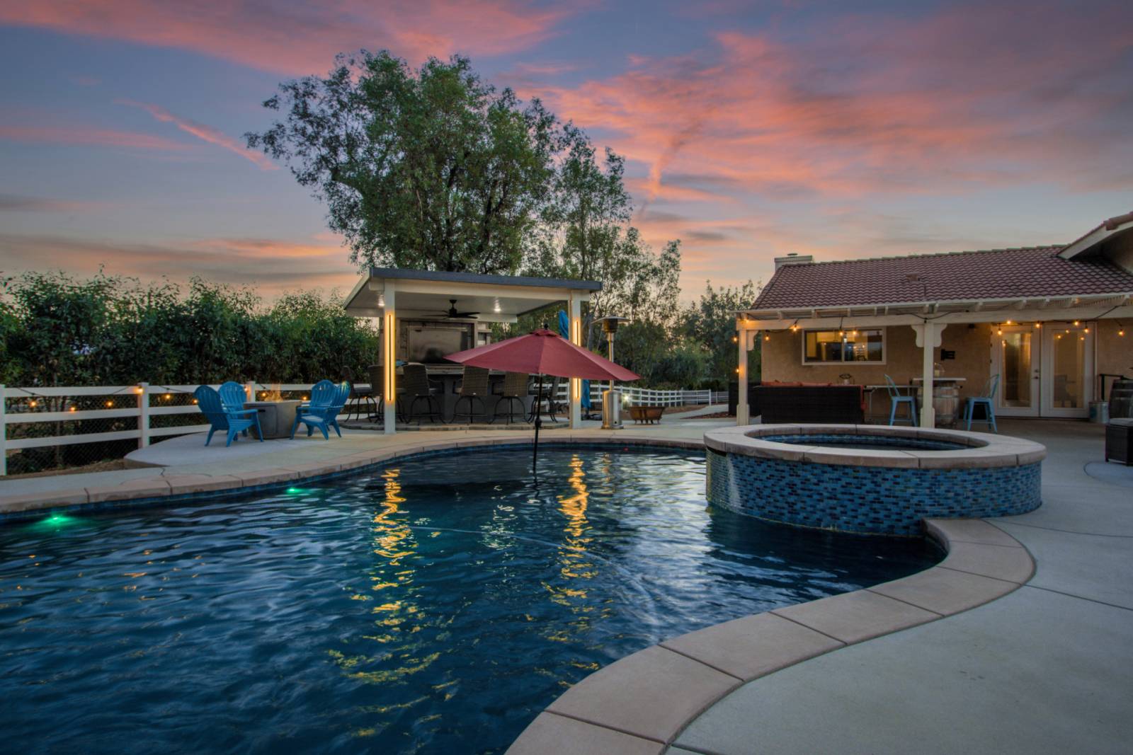 Welcome to Dovetale Vineyard Villa, a serene retreat nestled on 1.76 acres in the heart of Temecula Wine Country. This estate offers a harmonious blend of modern luxury and nature’s tranquility, making it the perfect getaway for families, equestrian enthusiasts, and those who love a "Farm to Table" lifestyle.