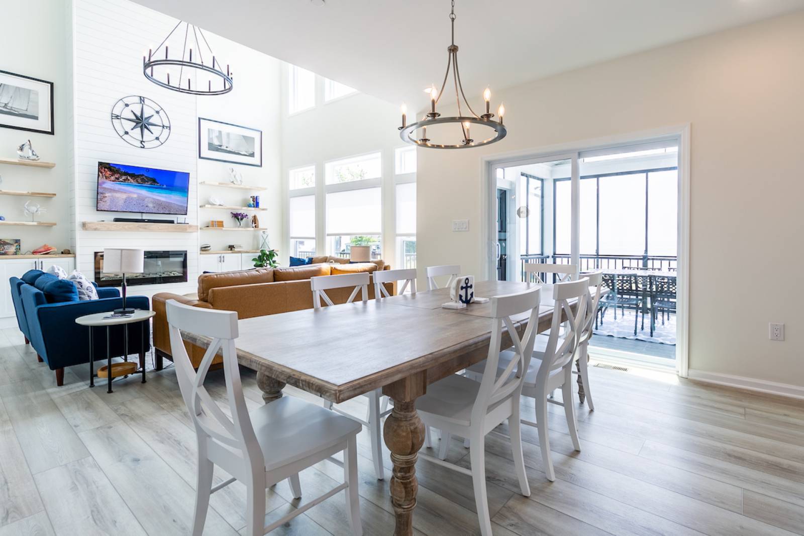 This brand new custom home was built with stunning views of the Chesapeake Bay and all the bells and whistles, including a large private pool (open late April-end of Oct), hot tub (available year round) and game room on a semi-private beach. The four-season screened-in porch naturally stays warm in the winter from the sun and cools from the bay breeze with the windows open. The home is a perfect retreat for one or more large families traveling together on a private resort-like getaway.