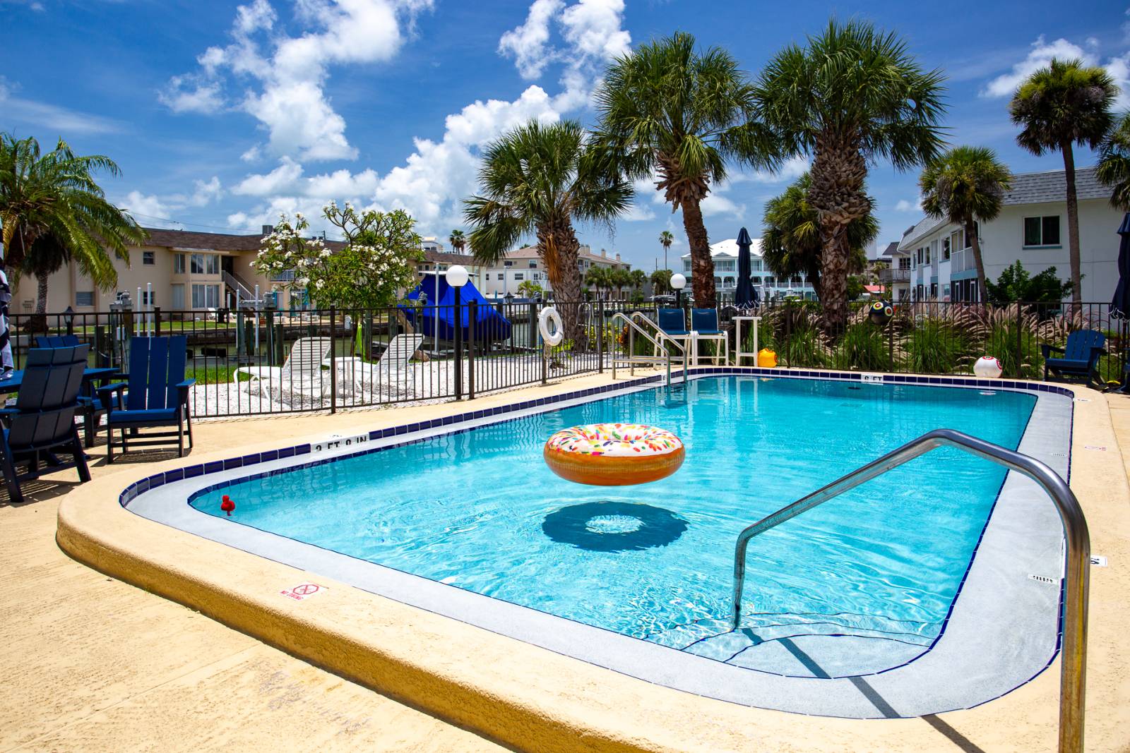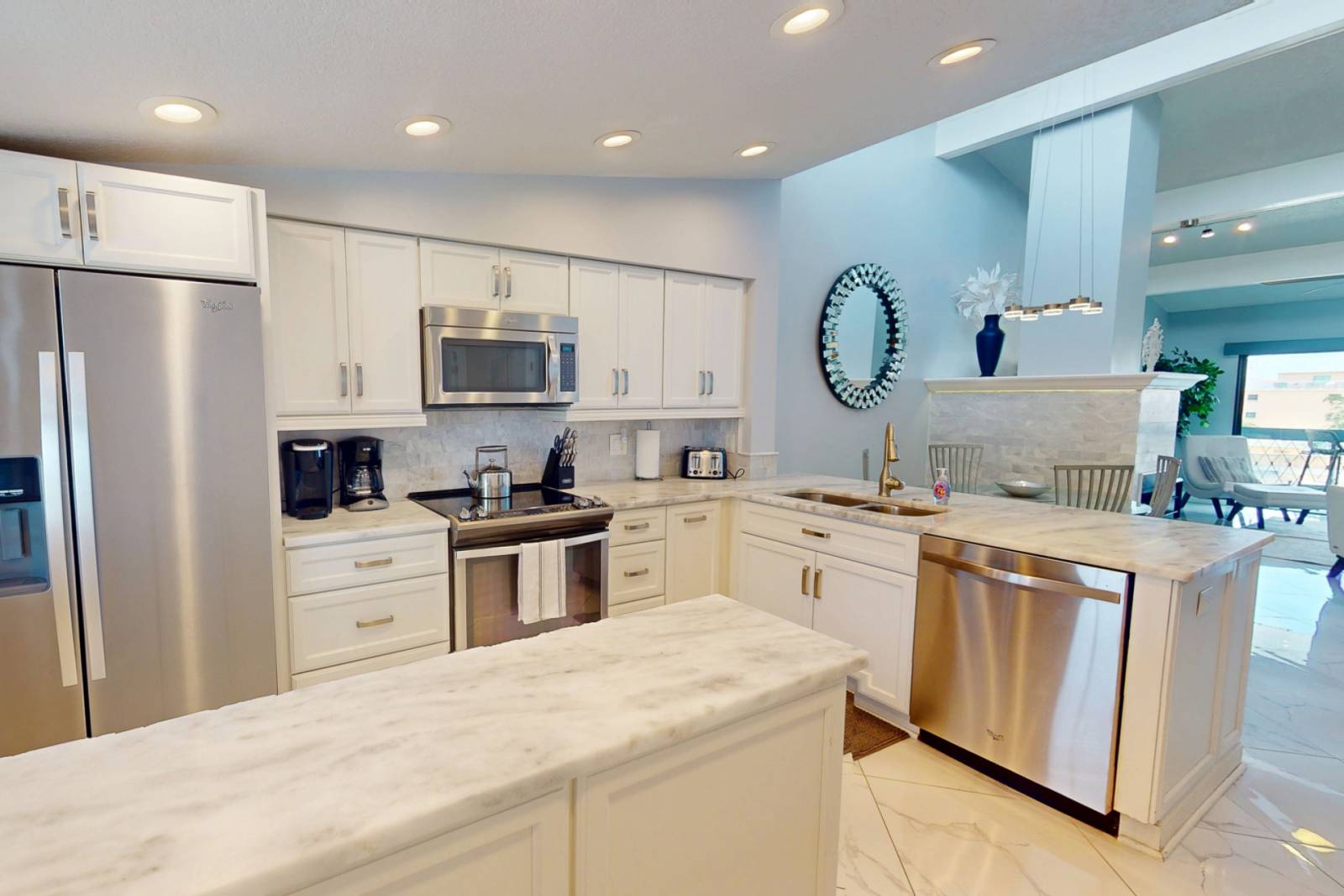 Luxurious Coastal Condo with Waterway Views, Pool, Balcony, and Steps to Treasure Island Beach.