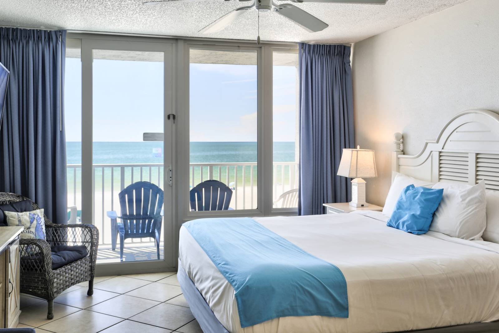 Wake up each morning to the sound of the waves and endless views of the Gulf. This cozy studio offers a welcoming retreat right on the sand, with all the comforts you’ll need for a carefree beach escape. Whether you’re here to unwind by the pool, sip a drink at the tiki bar, or simply watch the sunset from your own balcony, this is the spot to settle into vacation mode.