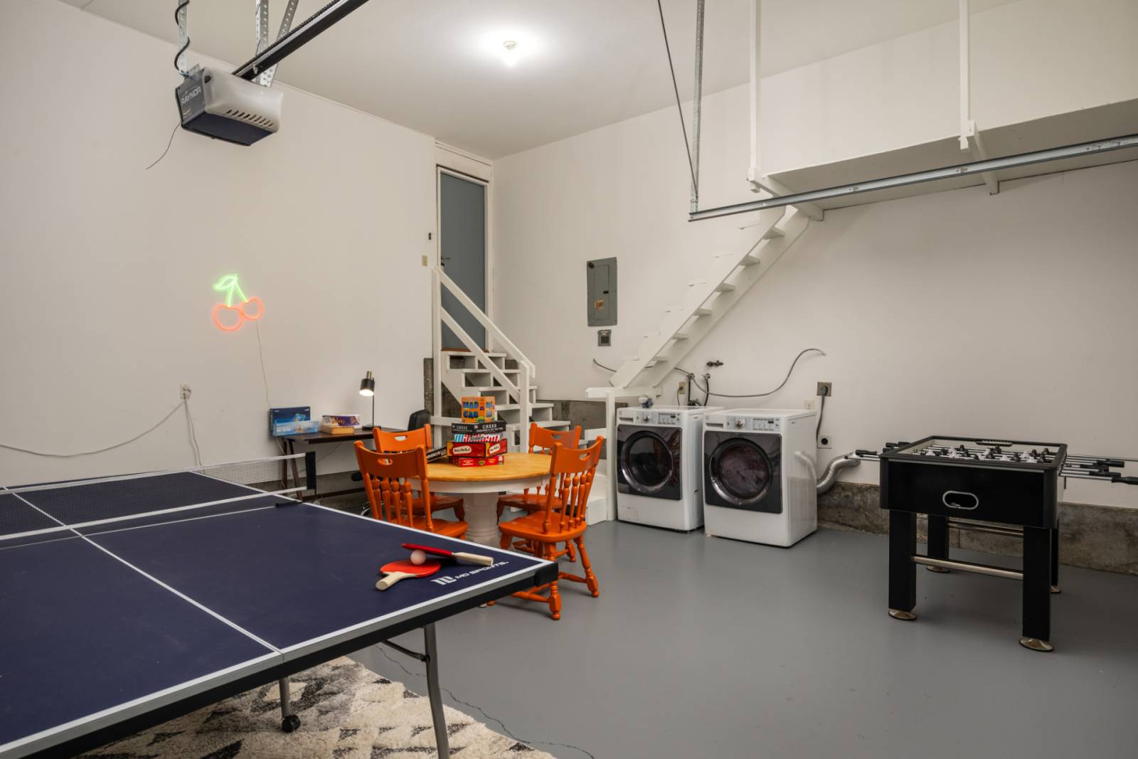 But the fun doesn’t stop there—head to the garage where you’ll find a fantastic game space featuring ping pong, foosball, and a collection of classic board games. It’s the perfect spot for friendly competition and lasting memories.