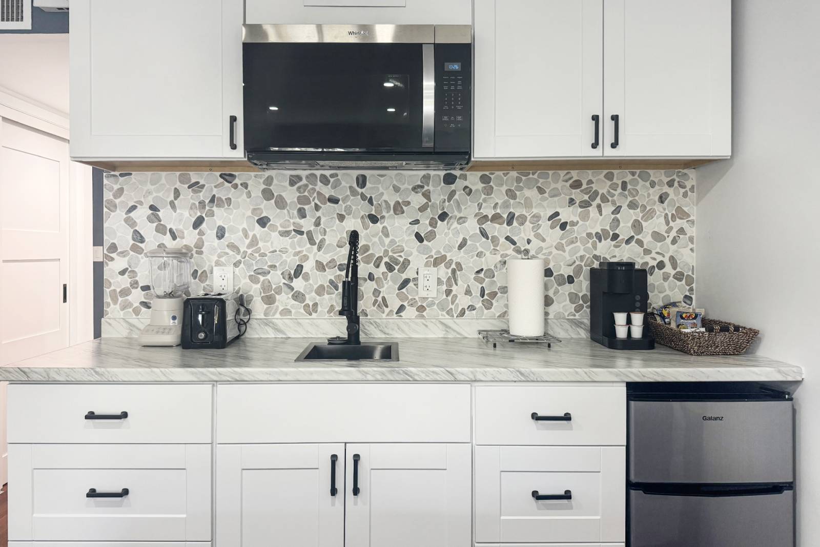 Kitchenette (microwave, compact fridge, Keurig, toaster, blender)