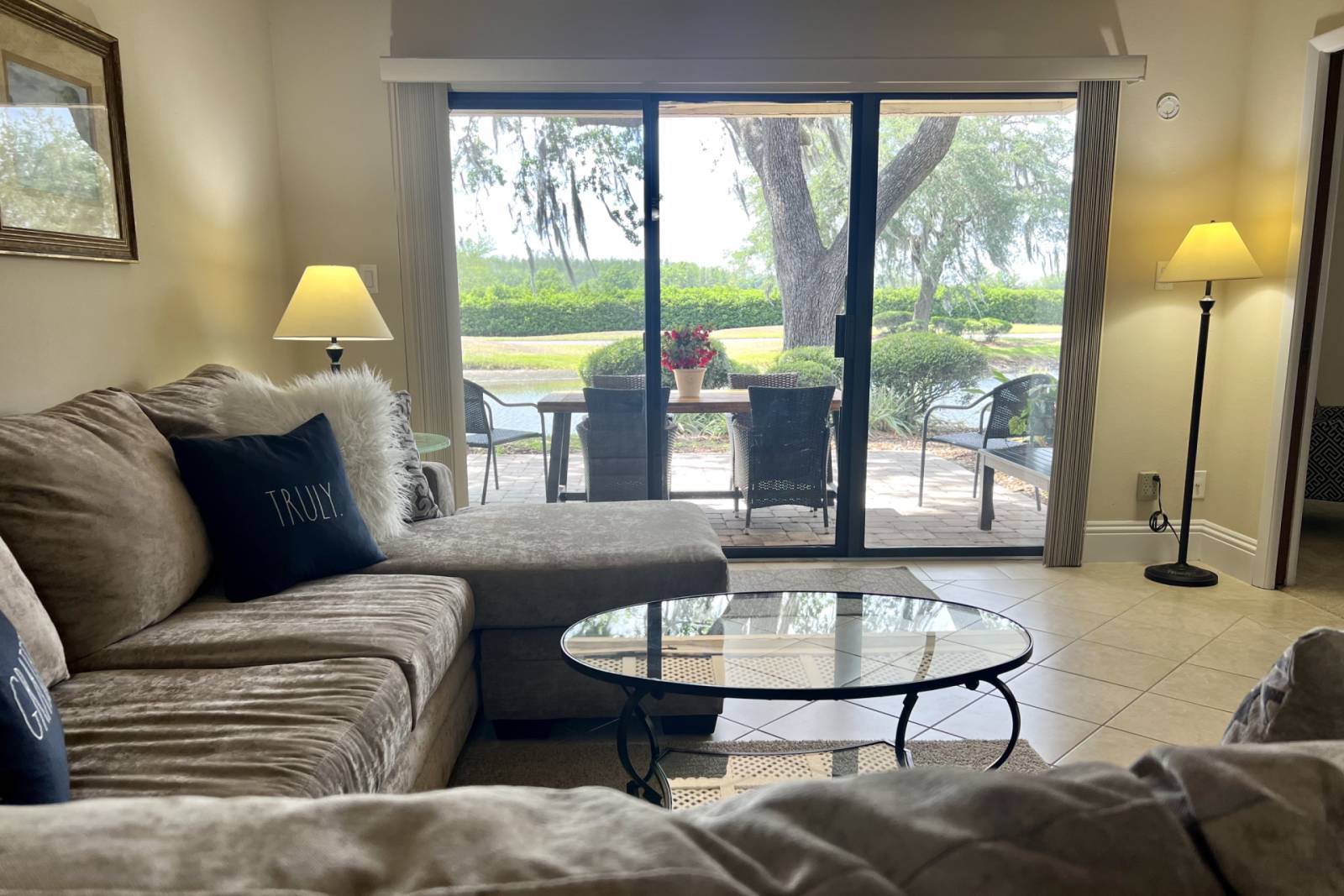 Whether you're looking for time away for that much-needed vacation, a transition from your home or visiting the Tampa area, you will feel at home and be all set for your RETREAT in our lovely ground floor condo. You will enjoy the ease of ground floor accessibility to parking area and only a couple of steps. The private patio is where you will be able to watch all the wildlife each morning & evening! Upon entry, the condo has beautiful tile flooring throughout the kitchen and living areas! The kitchen is fully equipped for the novice chef as well as the experienced cook! The master bedroom has a wonderful king size bed & a cozy sitting area & en suite bathroom. The second bedroom also has an en suite bathroom and queen size bed and sitting area with a 37" TV with Roku. If you'd like to catch up on all your favorite series, we have a 58" Smart TV with Roku & Cable to stream your favs! When you are ready to wind down, the patio is the perfect place to sit outside and take in the fresh Florida breeze and also catch a stunning sunset!