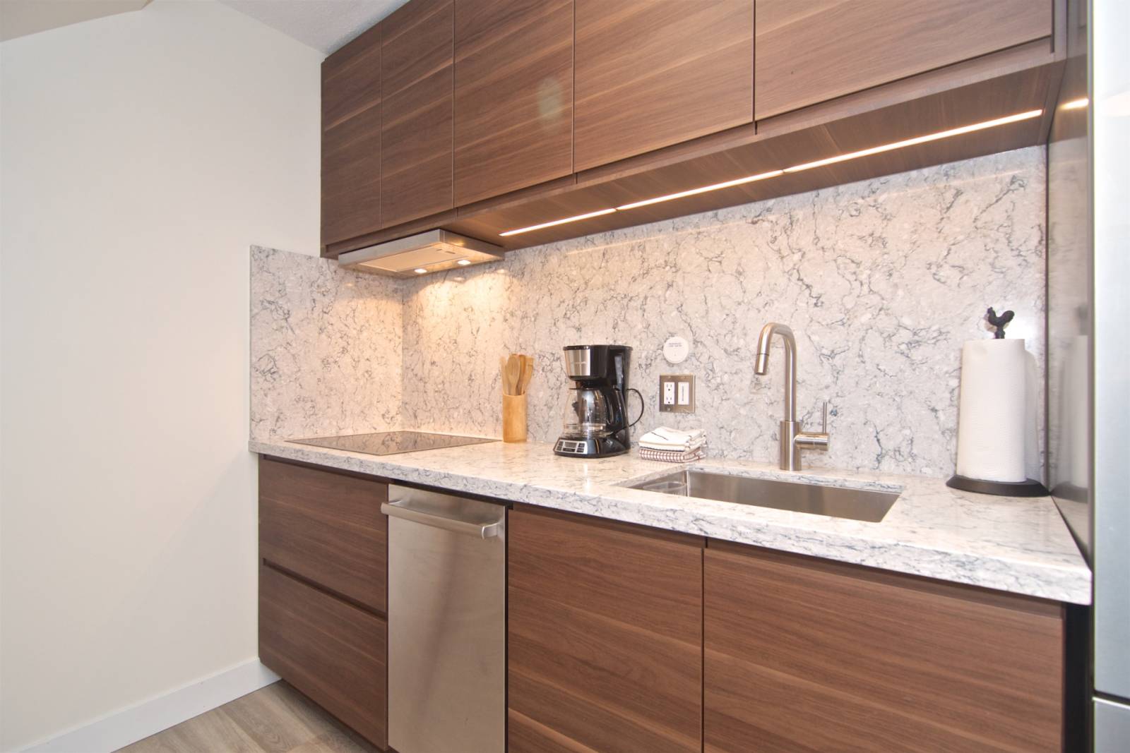 - Living Space: Spacious living room Sectional sofa ( converts to double bed) and cozy gas fireplace, and comfortable decor throughout. Fully equipped kitchen, full size stackable laundry and 4 piece bathroom. Patio off of living room